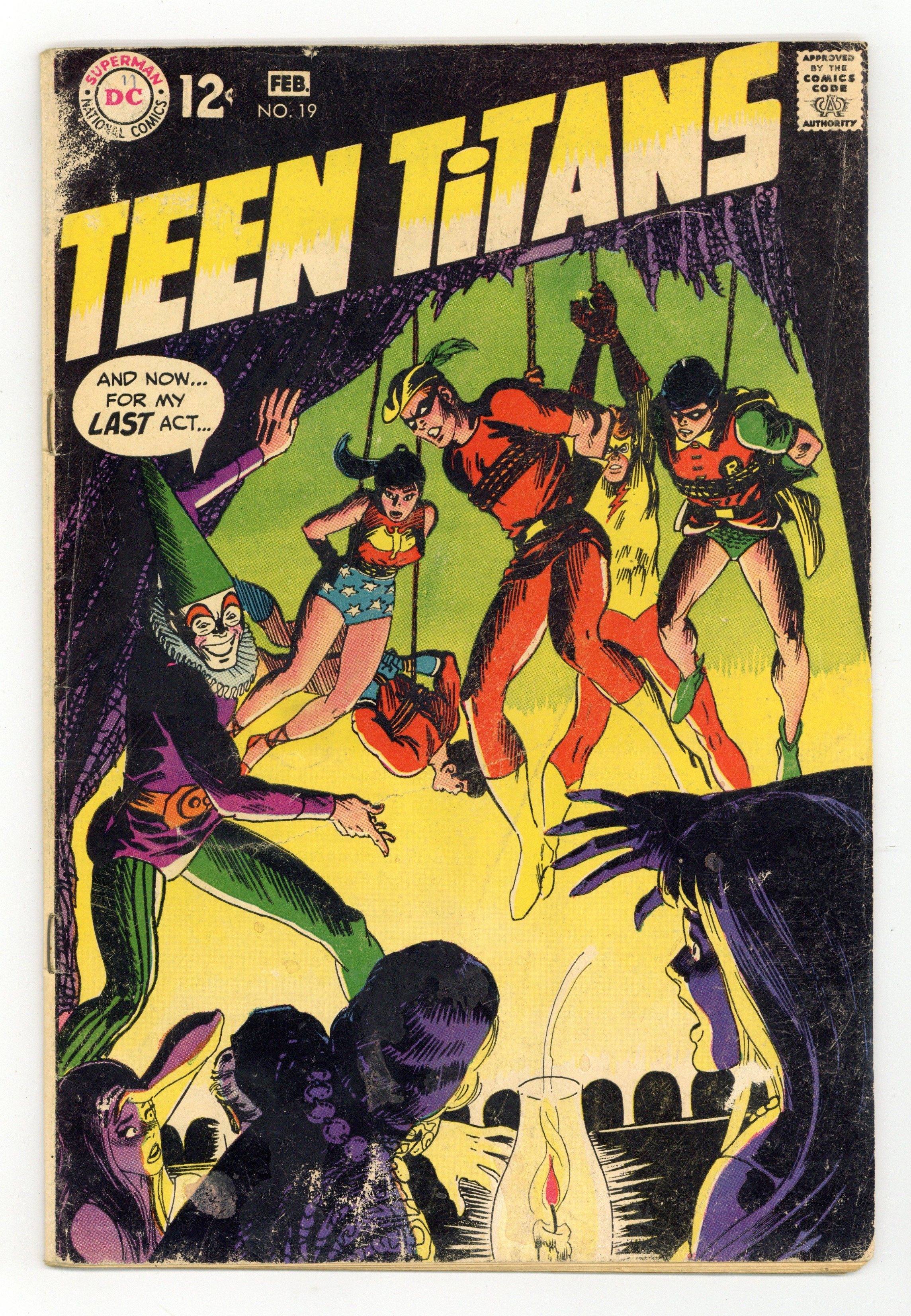 Written by Mike Friedrich. Art by Gil Kane and Wally Wood. Cover by Nick Cardy. The Titans battle Punch a teen-age would-be villain. Punch defeats two groups of Titans, but when they escape they are able to capture him with ease. Aqualad takes a leave of absence from the Titans. Wonderful World of Comics #7 article. 36 Pages, Full Color. Cover price $0.12.