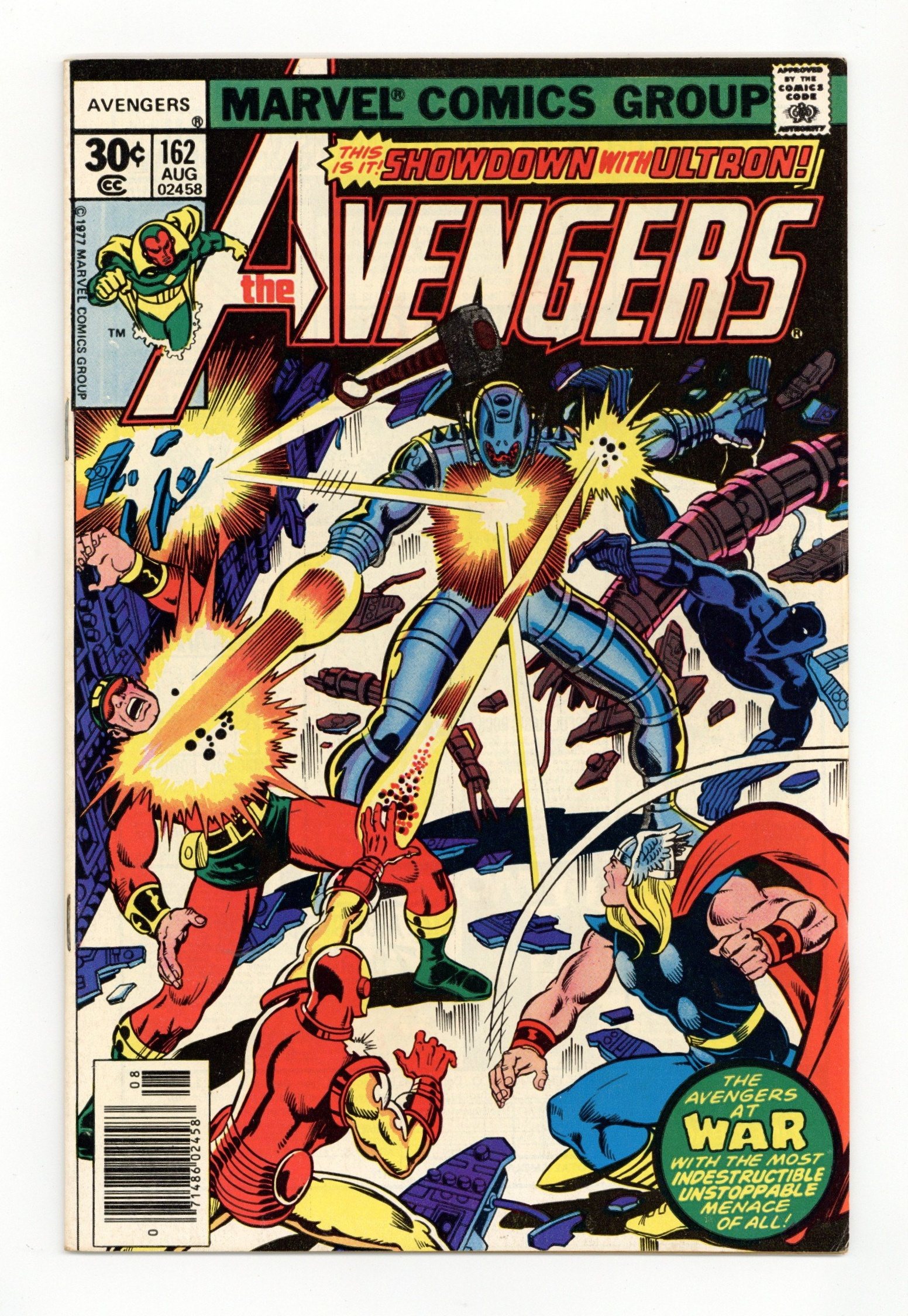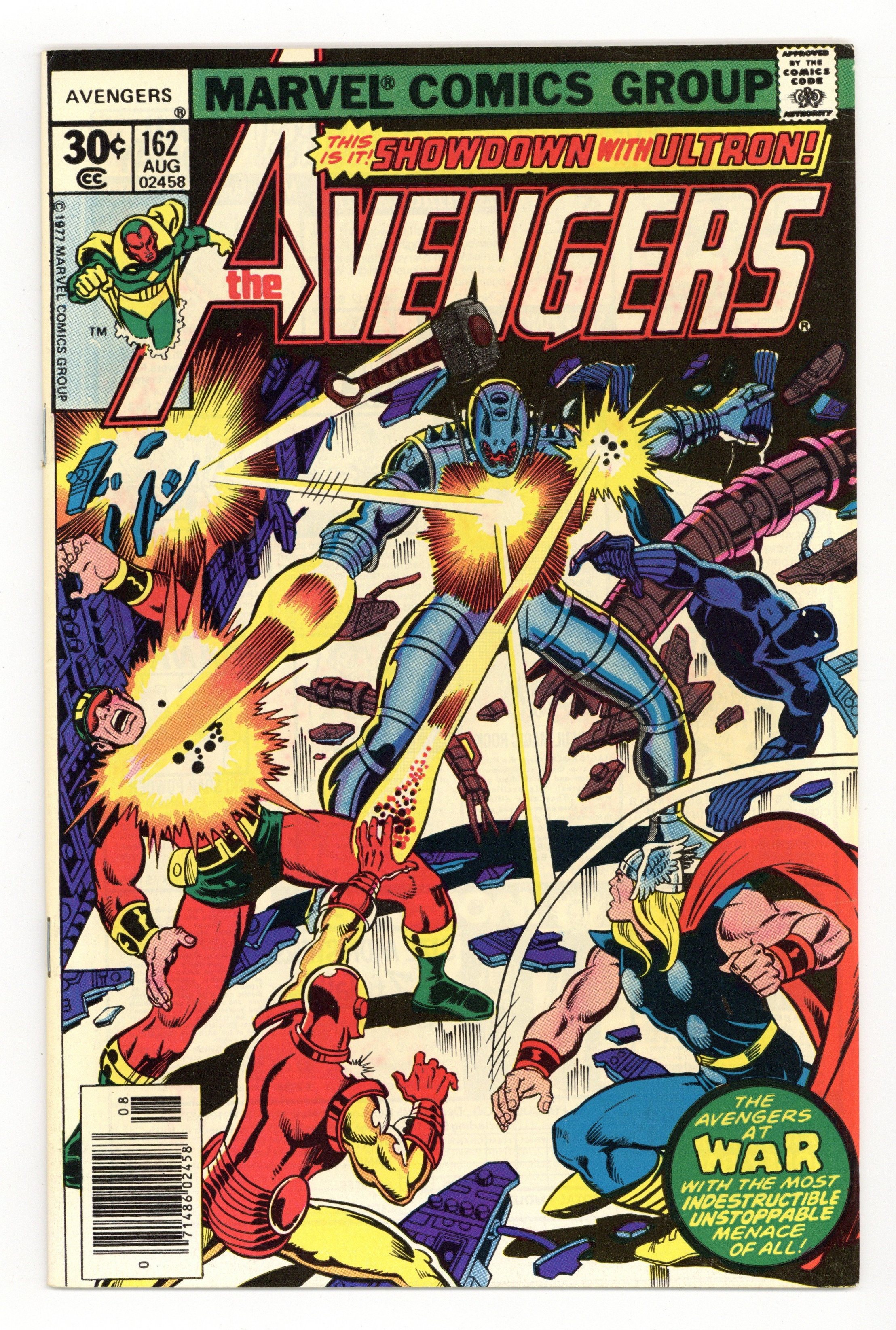 Tags: Marvel Legacy Numbering: Avengers (part 162), Avengers$16.25"The Bride of Ultron!" Part 2 of 2. Script by Jim Shooter. Pencils by George Perez. Inks by Pablo Marcos. Cover by George Perez and Pablo Marcos. After defeating the Avengers last issue, Ultron stands triumphant! And now the adamantium monster has a diabolic plan to create a female companion for himself! It's very simple...transfer the life force of Janet Pym into the empty metalloid body of Jocasta! But the Avengers won't go down without a fight! Once the Black Panther, Iron Man, Thor, and Wonder Man locate Ultron inside an abandoned research center on Long Island, the blockbuster battle begins! Can Earth Mightiest Heroes stop the sinister scheme of their long-time foe? Or will the Wasp tragically become the unwilling bride of Ultron? An excellent two-part story! First appearance of Jocasta. Cameo appearances by Hawkeye and the Two-Gun Kid. (Notes: Ultron returns in Avengers 171. A 35-cent cover price variant exists for this issue.) 36 pgs. Cover price $0.30.