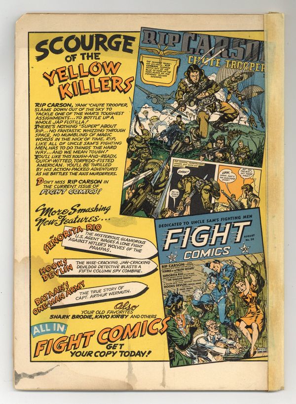 Published Aug 1942 by Fiction House.$99.99- Significant spine split. Staples added under tape (not manufacturing). Water damage.