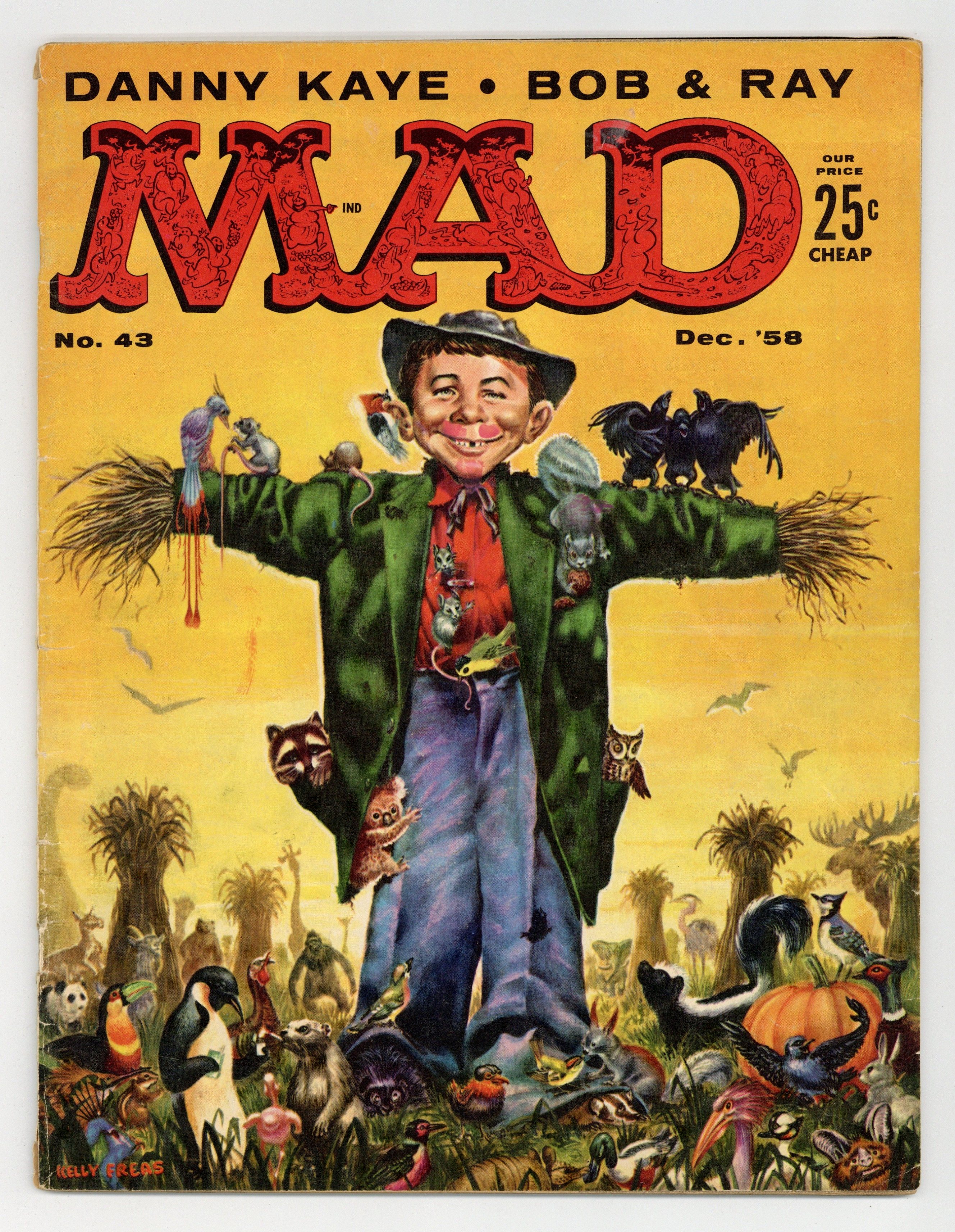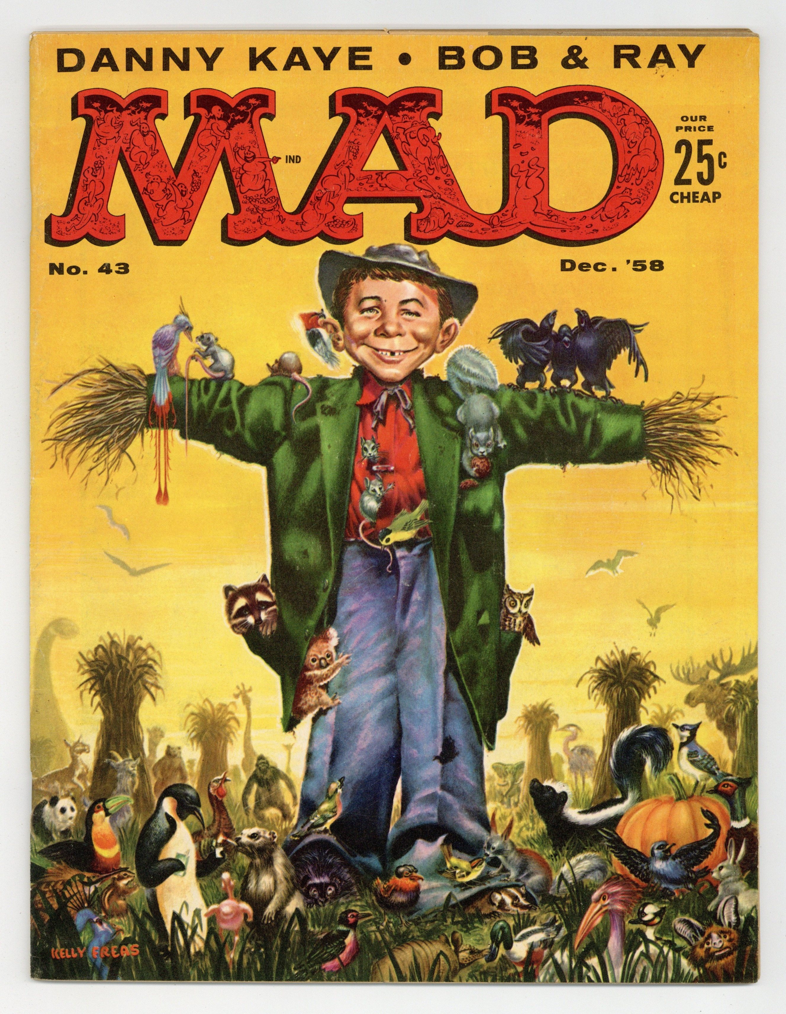 $18.00Cover art by Kelly Freas. Parody of American Express Travelers Cheques ads, , art by Kelly Freas. "MAD's M.V.B.T.A. Awards," script by Larry Siegel, art by George Woodbridge; Acting awards for baseball players hamming it up for fans and the camera during games. "The End of Comics," script by Tom Koch, art by Wally Wood; Possible final strips for when newspapers have to eliminate comics to use the space for more educational features. "Scenes We'd Like To See: The Frogmen," art by Joe Orlando. "The Electricians," script and art by Don Martin; Two building maintenance men try to find why a toaster won't work. "If Hollywood Directors Staged...Advertising Photos," art by Wally Wood; Parodies of ads depicted in the styles of directors: Alfred Hitchcock; Elia Kazan; Cecil B. DeMille; Sam Katzman. "Pushcarts," script and art by Dave Berg; History of merchandising by pushcarts and projection to a future where stores are so large that vendors sell by pushcarts within the stores. "The MAD Halloween Trick-Or-Treatment," script by Frank Jacobs, art by Mort Drucker; A list of revenges against common Halloween pranks. "The MAD Treasury of Unknown Poetry," script by Tom Koch, art by Joe Orlando. "The New Baby," script by Milton Schafer and Danny Kaye, art by Wally Wood; Song lyrics as performed by Danny Kaye, with illustrations. "Music Report," script by Bob Elliott and Ray Goulding, art by Mort Drucker; Wally interviews a man who tests the truth of song lyrics and watches him demonstrate "It's a treat to beat your feet in the Mississippi Mud." "Woodlore," art by George Woodbridge; A guidebook to (phony) dangerous plants and animals of the woods. Parody of ad for Crest Toothpaste, with painting signed as "Norman Rocknroll," art by Kelly Freas. 52 pgs., B&W. Cover price $0.25.