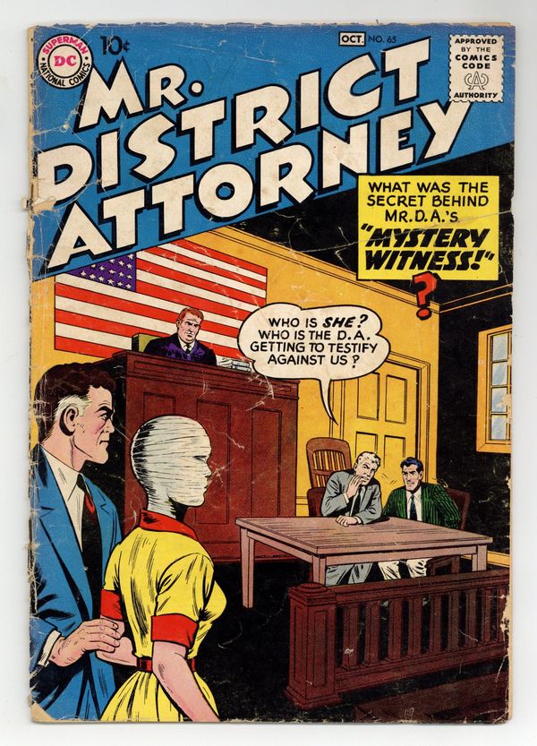 Cover by Sheldon Moldoff. Stories by Henry Boltinoff and unknown. Art by Sheldon Moldoff and Henry Boltinoff. Mr. District Attorney in: "World-Wide Dragnet" with art by Sheldon Moldoff; "The Mystery Witness!" with art by Moldoff; and "Mr. D.A. -- Enemy Agent!" with art by Moldoff. Also in this issue: Warden Willis 1-pager by Henry Boltinoff; Casey the Cop half-pager by Boltinoff; Strange Laws 1-pager by Boltinoff; and The D.A. File 1-page text article. 32 pages, full color. Cover price $0.10.