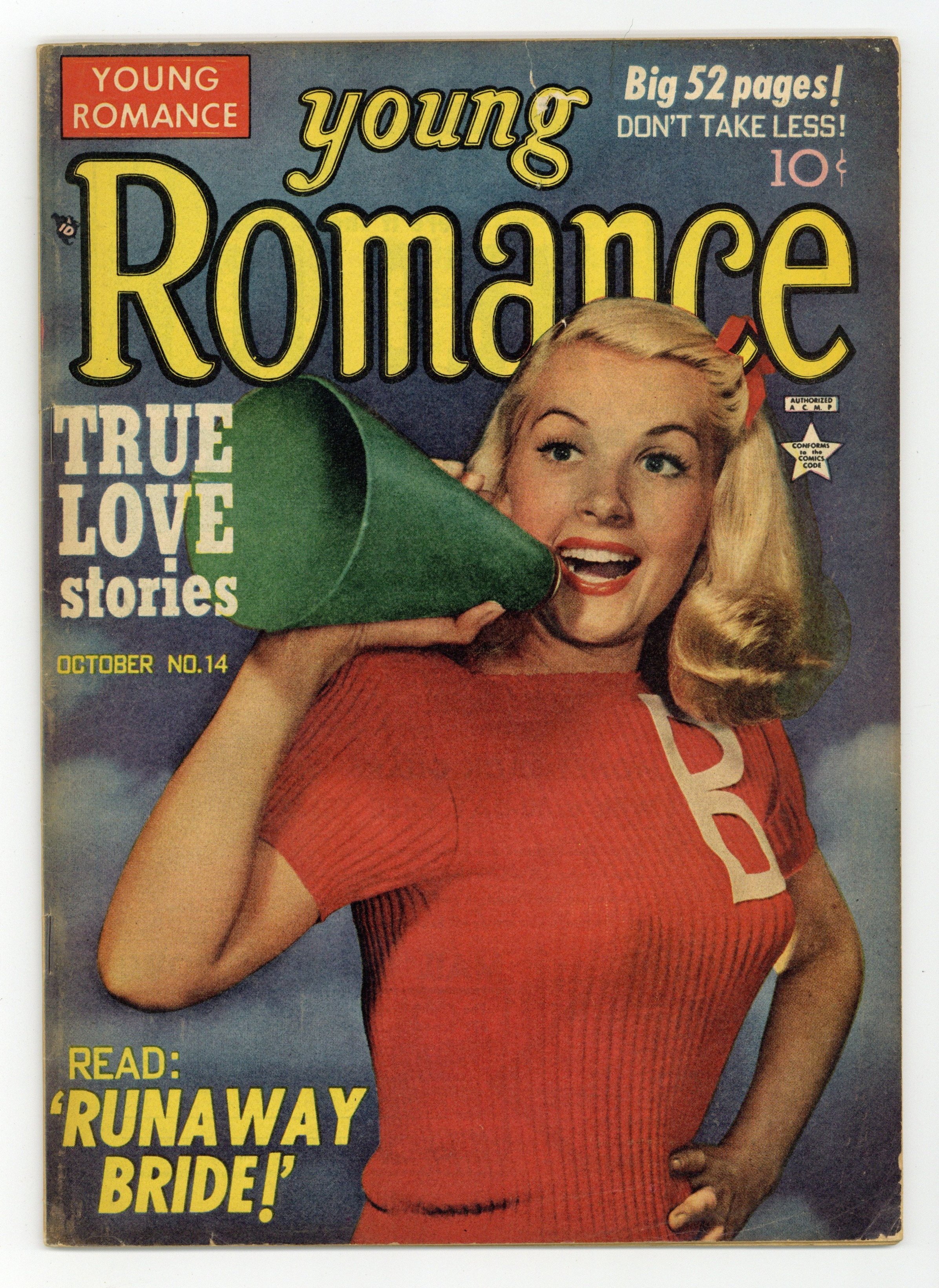 #14 on cover; Vol. 3 No. 2 in indicia. Photo Cover by Theda and Emerson Hall of "Barbara Bates, Warner Bros. Starlet." Stories by unknown. Art by Jack Kirby, Bill Draut, Bruno Premiani?, Vic Donahue and Joe Simon. Featuring: "Runaway Bride!"; "No Prescription for Love!"; "The Man for Us!"; "The Barrier Between Us!"; and a 3-page Nancy Hale's Problem Clinic story! Plus: 2-page text story "Cruise to Romance"! Also: 1-page Good Manners Will Make You RATE with Your Date advice column! 52 pages, full color. Cover price $0.10.