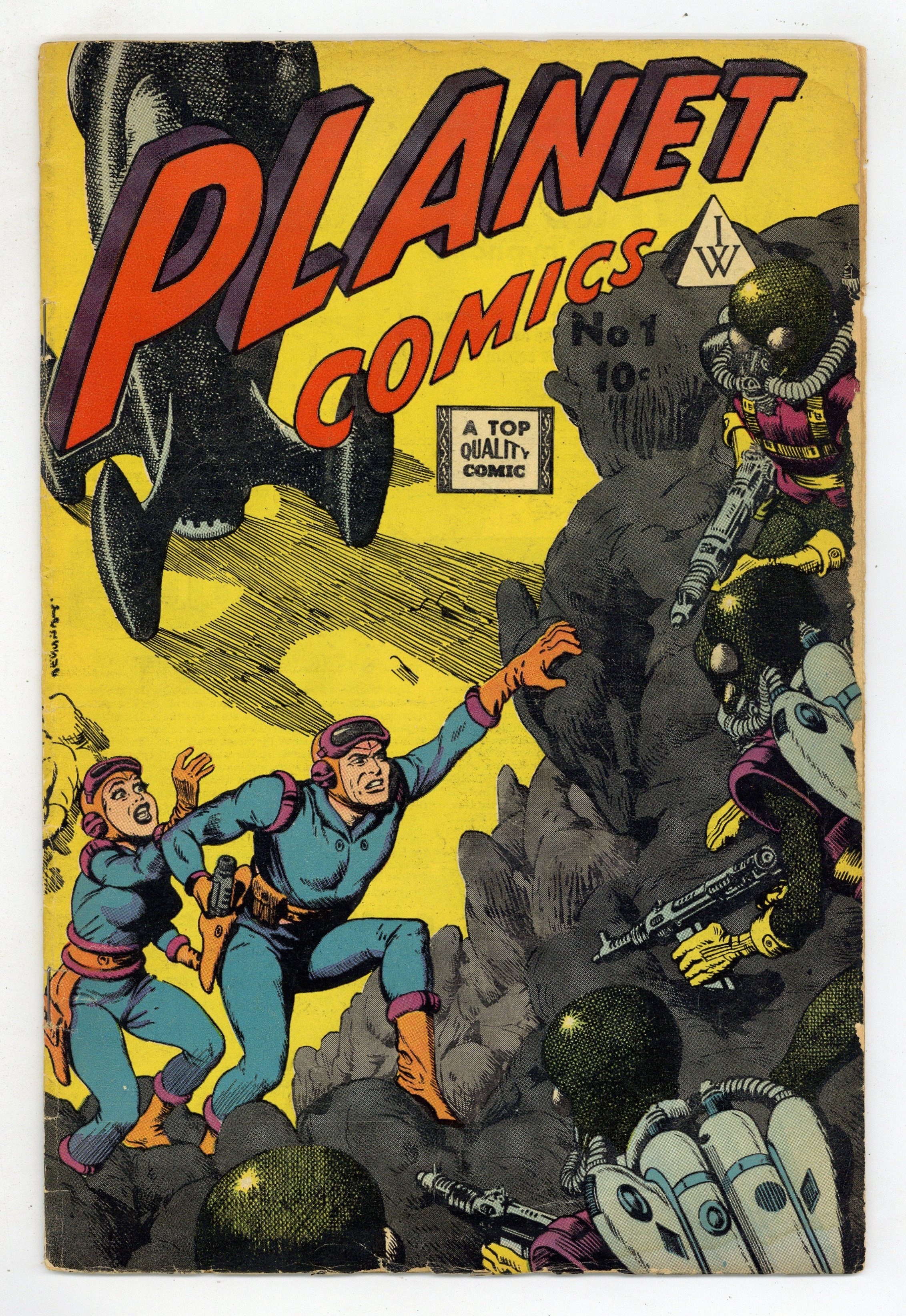 Reprints Planet Comics 70 (cover from Attack on Planet Mars). "The Lost World" (art by L. Renee), Gale Allen, Star Pirate, and Space Rangers. Cover price $0.10.