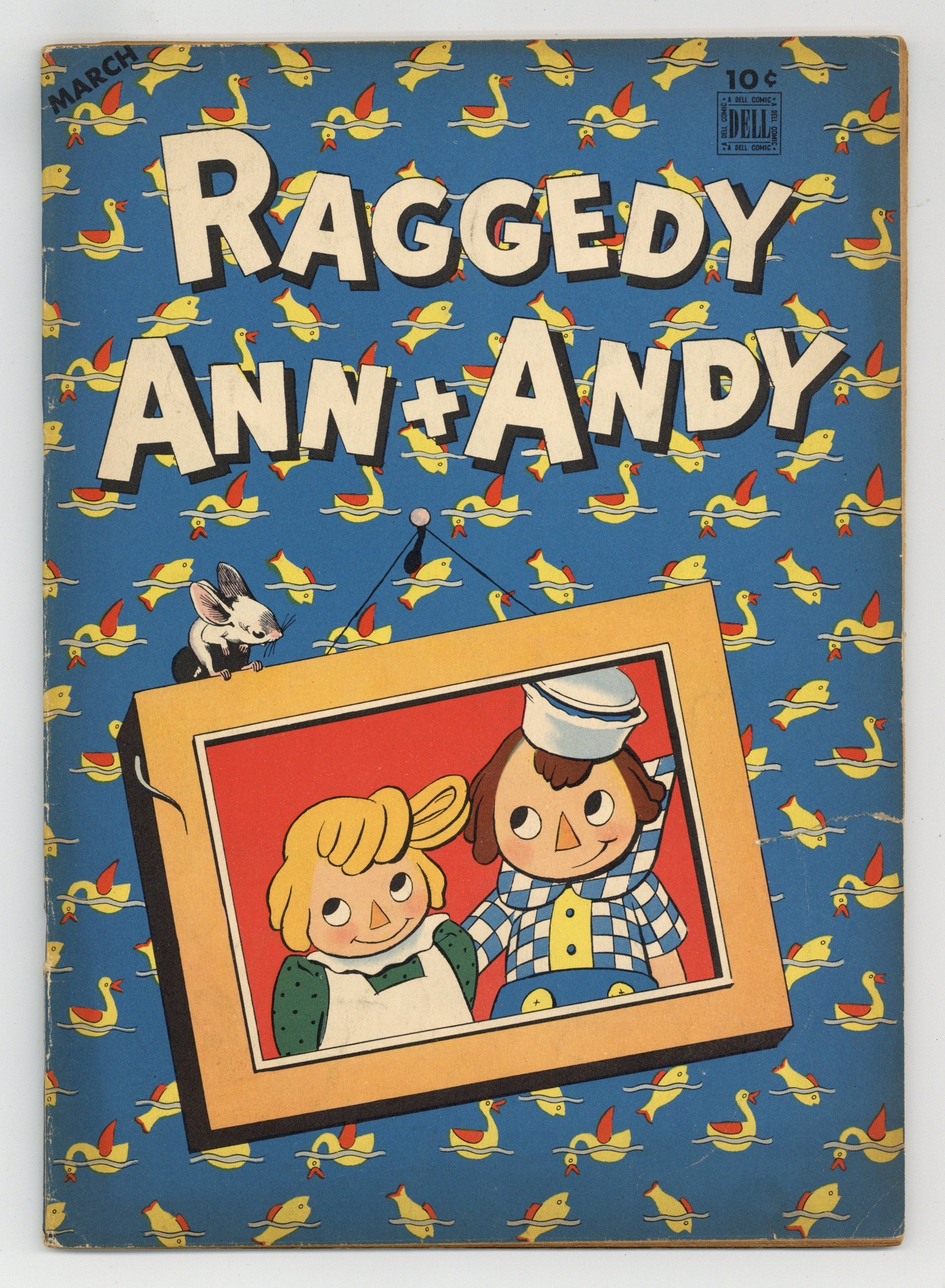 Stories and art by Walt Kelly, George Kerr (credited as Johnny Gruelle), W.J. Enright, Frank Jupo and Dan Noonan. Johnny Gruelle's famous doll characters have adventures and learn lessons, featuring early art from Walt Kelly. Legendary Pogo artist Walt Kelly adapts Mother Goose nursery rhymes, including Hot Cross Buns and The Lion and the Unicorn. Raggedy Ann and Andy help Tim-Tim Tammy Tam and his friends when they are attacked by the Robber Rats. Donot Inflate mistakes soap for toothpaste, and his friends think he's a rabid penguin. Plus activity pages and "nonesuch" animals. The Childrens Zoo; Raggedy Ann; None-Such Animals: The Twaddy; Jumbo Roly-Poly and Mr. Bam; The Raggedy Way; Egbert Elephant and His Friends; Animal Mother Goose; The Three Little Elves; Billy and Bonny Bee; Baby Llama. 48 pages, Full Color. Cover price $0.10.