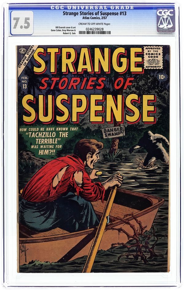 "The One Who Watches" (art by Gene Colan), "The Black Beard" (art by Gray Morrow), "When the Yogi Speaks," "The Most Dangerous Man in the World" (art by Robert Q. Sale), "The Strange Seed," "Tachzillo the Terrible," and a two-page text story, "The Secret of the Saucers." Bill Everett cover. Cover price $0.10.