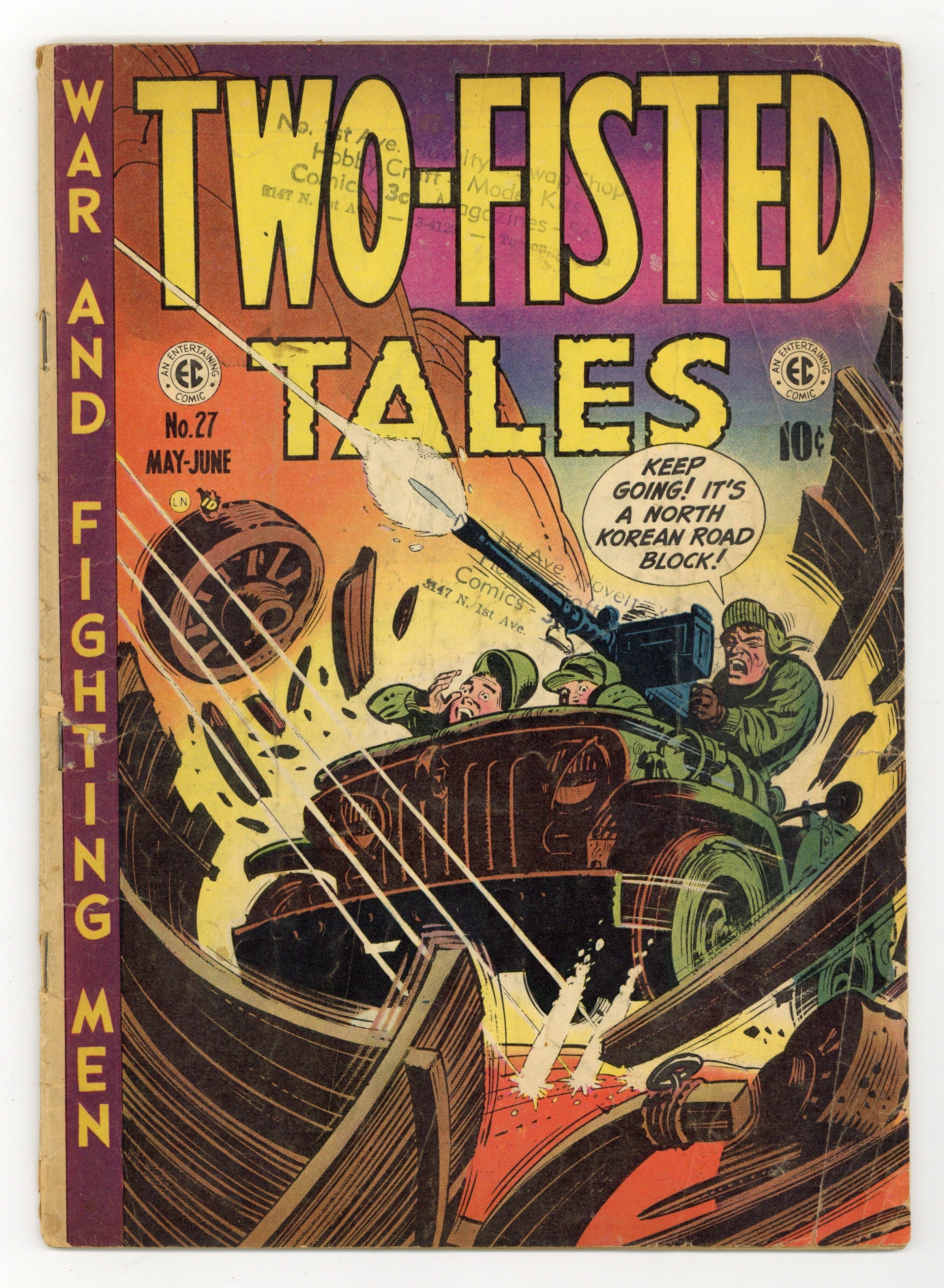 Cover by Harvey Kurtzman. Stories by Harvey Kurtzman and Al Feldstein. Art by John Severin, Will Elder, Wally Wood, Jack Davis, and Harvey Kurtzman. Harvey Kurtzman's legendary series enlisted top EC artists for gritty tales of war and adventure. A naive lieutenant leaves himself open to sniper attacks in Korea, in a story with inks by MAD legend Will Elder. The real-life story of the legendary ascent of the US Rangers up the cliffs of Pointe Du Hoe during the Normandy Invasion. A member of the 7th Cavalry witnesses Custer's Last Stand, with art by Wally Wood. Plus The EC "Artist of the Issue" featuring Wally Wood. Luck!; Custers Last Stand; Escape Plot; D-Day!; Jeep! 36 pages, Full Color. Cover price $0.10.