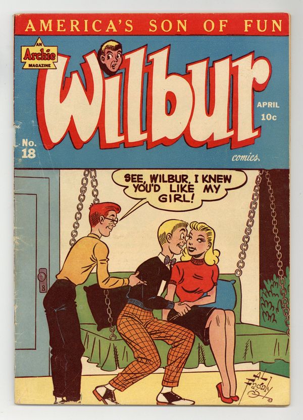 Cover art by Al Fagaly. "Wilbur Meets Laurie Lake," art by Bill Vigoda; Commodore Lake moves to Westfield to get his daughter away from the boys in the city; Wilbur meets the pair at the station and makes a shambles of trying to take their baggage to their new home. "The Daring Young Man," art by Bill Vigoda; Wilbur and Red go to the circus; Red gets a job, but Wilbur tries to sneak in, with unpleasant results. Archie ad. "The Speed Demon," art by Bill Vigoda; Wilbur and Red plan to participate in the Westfield jalopy race to Flatburg, but Slats sabotages Wilbur's jalopy. Nevada Jones ad. "Wilbur Builds His Dream Boat" text story. Statement of Ownership for October 1, 1947; No circulation figures given. Wilbur's Hollywood Quiz Page. "The Sky's the Limit," art by Bill Vigoda; Wilbur builds a model airplane for the hobby show, but it causes nothing but trouble when he tries to fly it. Super Duck ad. Untitled Katy Keene story, script by Bill Woggon; aty's future is told by a swami with a crystal ball; Later she and Sis go to the observation tower on the 100th floor of the "Umpire State Building." Katy Keene paper doll. 52 pgs., full color. $0.10. Cover price $0.10.