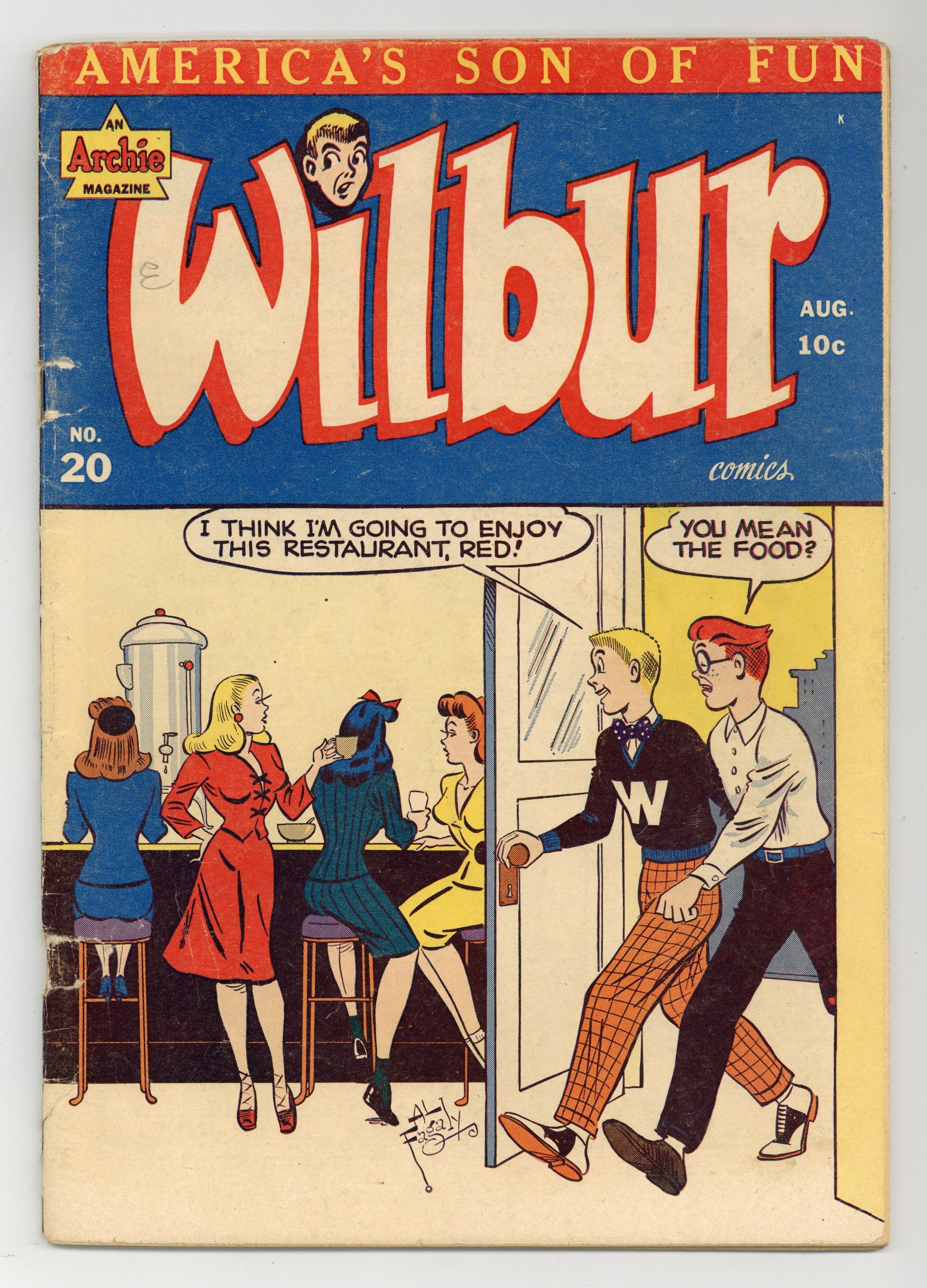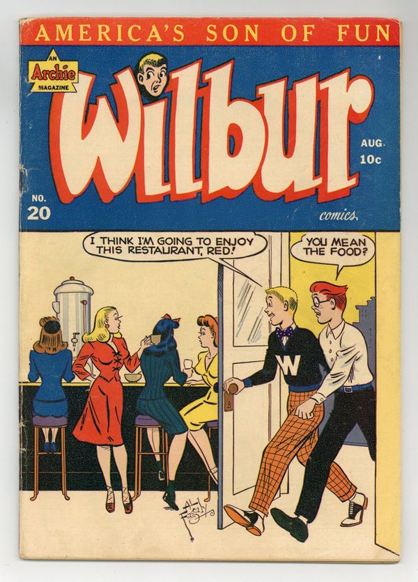 Cover art by Al Fagaly. "Information Squeeze!"; Wilbur gets Linda to do his homework while he and Laurie go on the Truth and Catastrophies radio show. "Ship Ahoy"; Wilbur accidentally buys his father a boat for his birthday. Wilbur Quiz. "The Joint's Jumpin'"; The gang rehearses at Laurie's house for a dance contest. "Of Mice & Wilbur," art by Al Fagaly; Wilbur borrows a mouse to scare Laurie with, but it gets away from him. "Passing the Buck"; A few days after smashing the fender of his father's car, Wilbur gets permission to borrow it again. Untitled Katy Keene story, script and art by Bill Woggon; Lesley has to get a good pin-up picture of Katy or he's fired. Watch for Katy Keene the Pin-Up Queen house ad. 52 pgs., full color. Cover price $0.10.