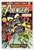 Tags: Marvel Legacy Numbering: Avengers (part 125), Thanos: The Final Threat (part 14), Avengers, Thanos$80.00"The Power of Babel!" Guest-starring Captain Marvel. Script by Steve Englehart. Art by John Buscema (breakdowns) and Dave Cockrum (finishes). Cover by Ron Wilson and John Romita. Story continues from Captain Marvel 32. Captain America returns to the Avengers just in time for an out-of-this-world adventure! Earth's Mightiest Heroes blast off into outer space to intercept Thanos' awesome armada headed towards Earth! The Avengers attack the alien starships and inflict heavy damage until they bump into a solid black force field! What's hiding behind the imposing barrier? The Vision, Scarlet Witch, Swordsman, and Mantis penetrate the force field and discover the mad Titan's massive command ship! And hordes of aliens inside! But these are four mighty avengers! With skill and teamwork, they disable the ship's universal translator and throw the entire attack fleet into chaos! Have the Avengers finally derailed Thanos' plan for conquest of the cosmos? Story concludes in Captain Marvel 33. Cameo appearances by Libra, Lou-Ann, Thanos, and the Skrulls. Avengers Lineup: Black Panther, Captain America, Iron Man, Mantis, Scarlet Witch, Swordsman, Thor, and the Vision. (Note: The letters page contains Marvel Value Stamp Series A #69 Marvel Girl.) 36 pages Cover price $0.25.