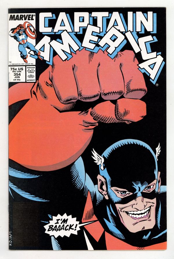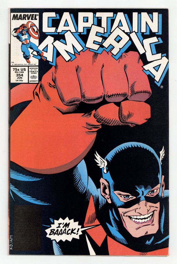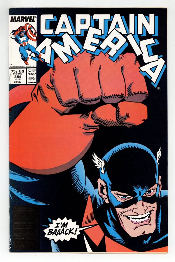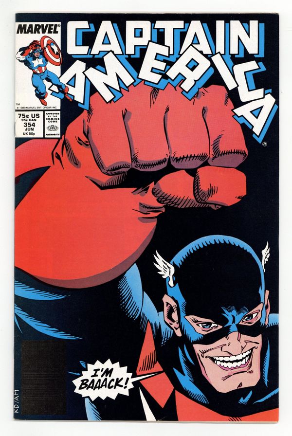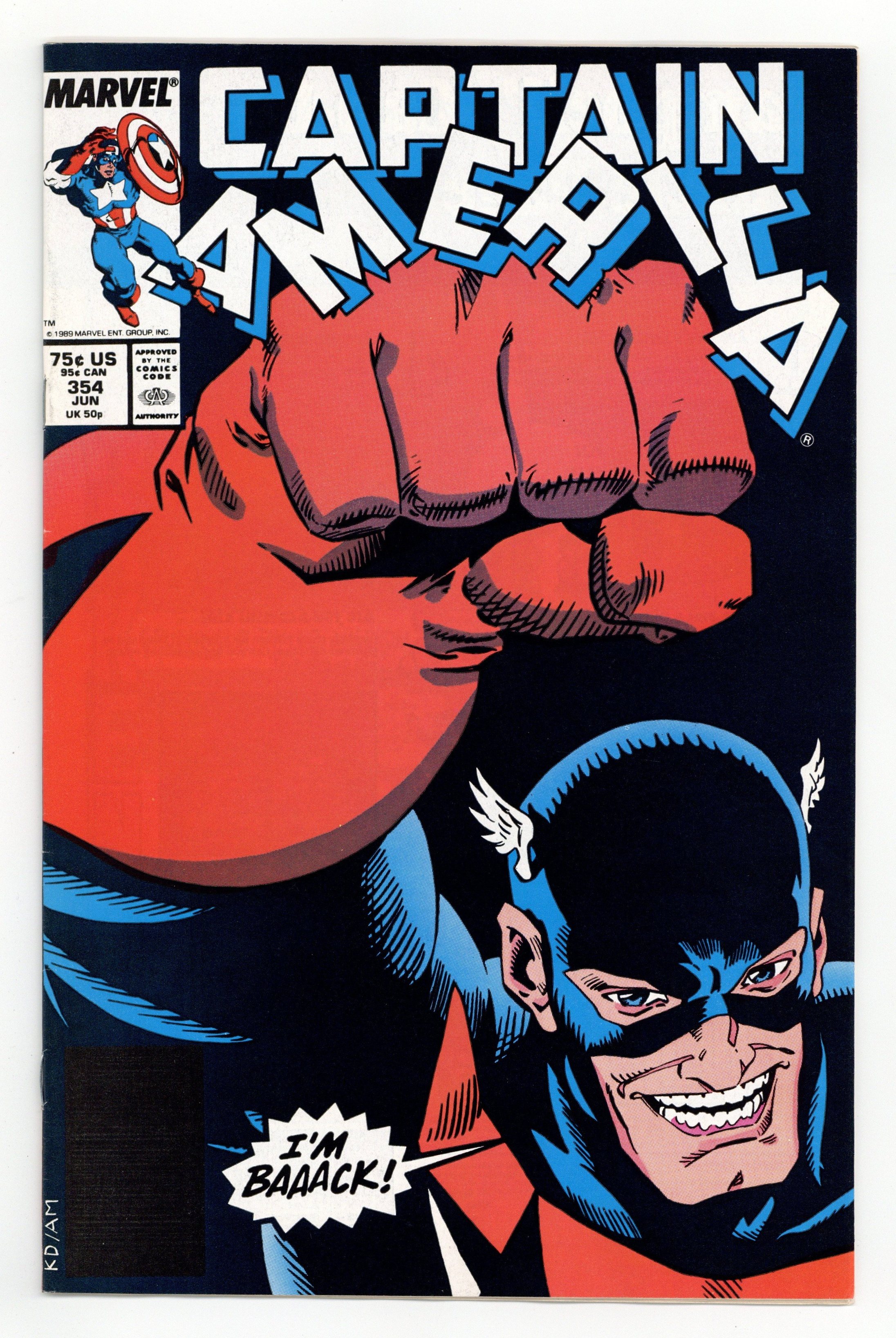 Tags: Marvel Legacy Numbering: Captain America (part 354), Captain America$25.001st app of U.S. Agent in "Reawakening" Story by Mark Gruenwald. Art by Kieron Dwyer and Al Milgrom. Captain America travels to Waltham, Massachusetts to recover the robot body of the Fourth Sleeper (last seen in Captain America 102). What's going to happen if the Sleeper awakens? Meanwhile, the Commission has a new prime operative: the U.S. Agent! First appearance of the U.S. Agent (aka John Walker). (Note: The adventures of the U.S. Agent continue in Avengers West Coast 44.) 36 pages Cover price $0.75.