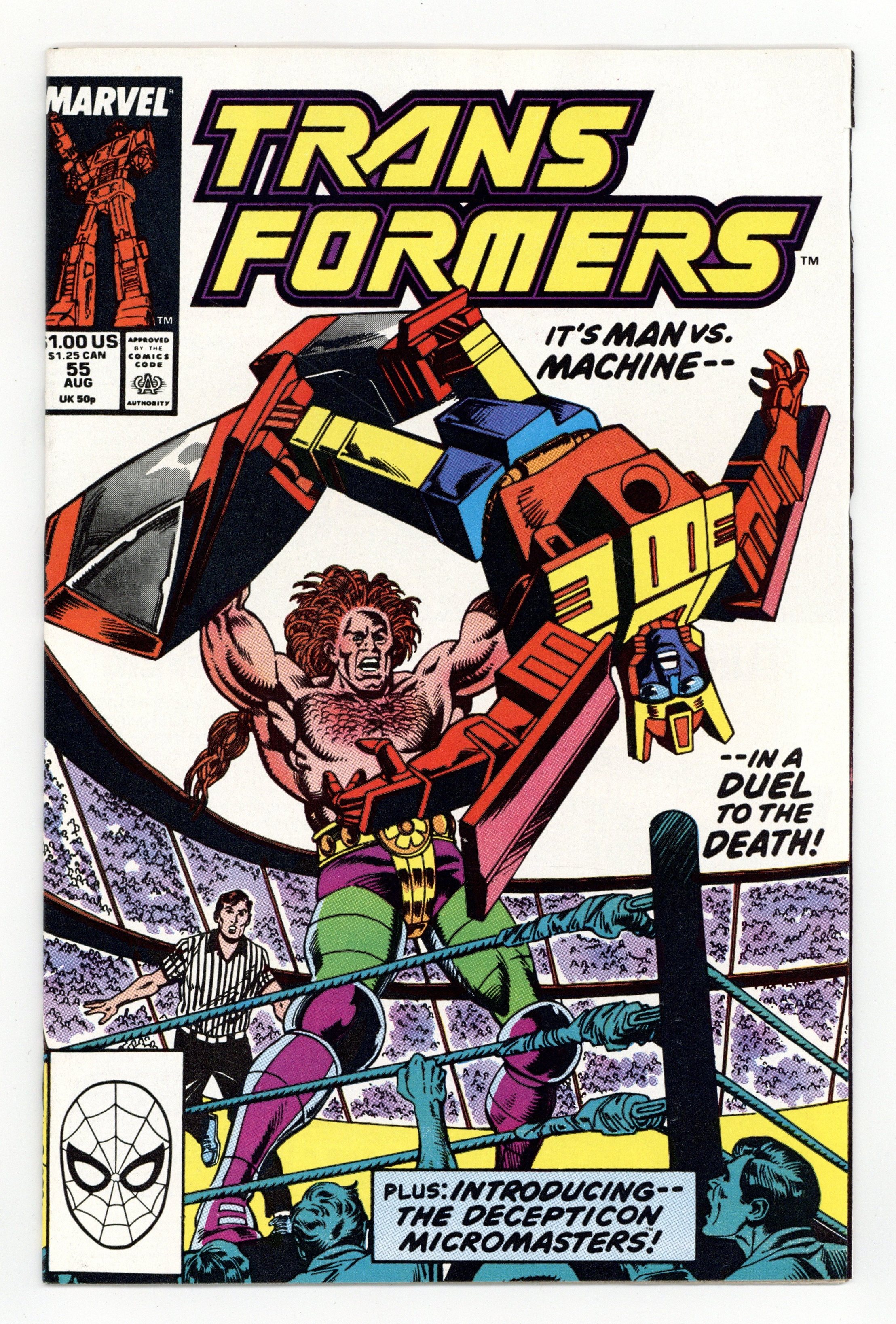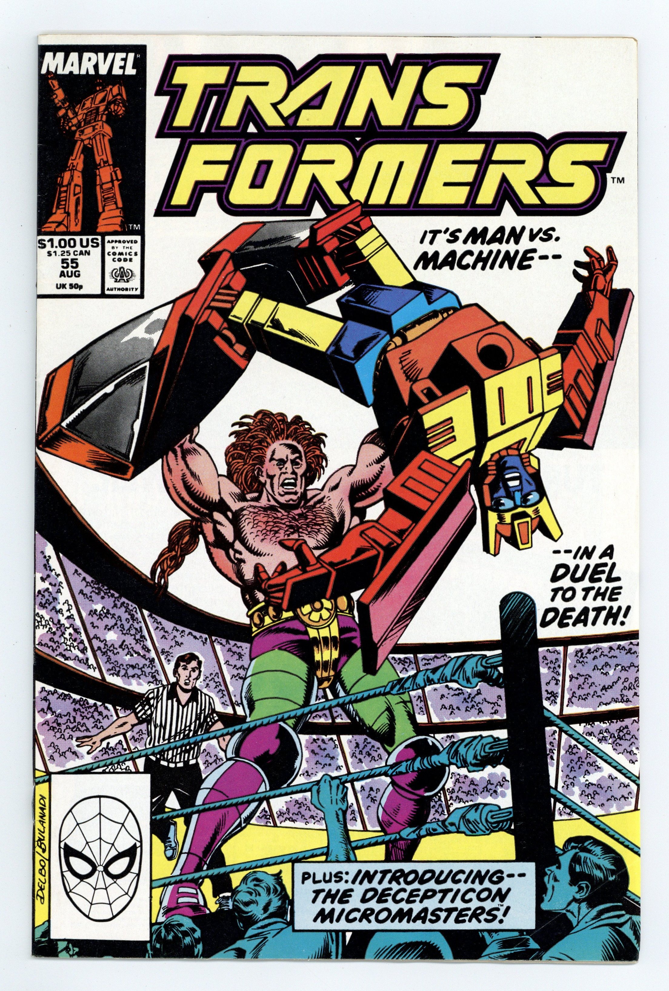 Direct Edition. It's man vs. machine...in a duel to the death! Plus, introducing the Decepticon Micromasters! Written by Bob Budiansky, with art by Bob Budiansky, Jim Fern and Mike Gustovich. Cover by Jose Delbo and Danny Bulanadi. Cover price $1.00.