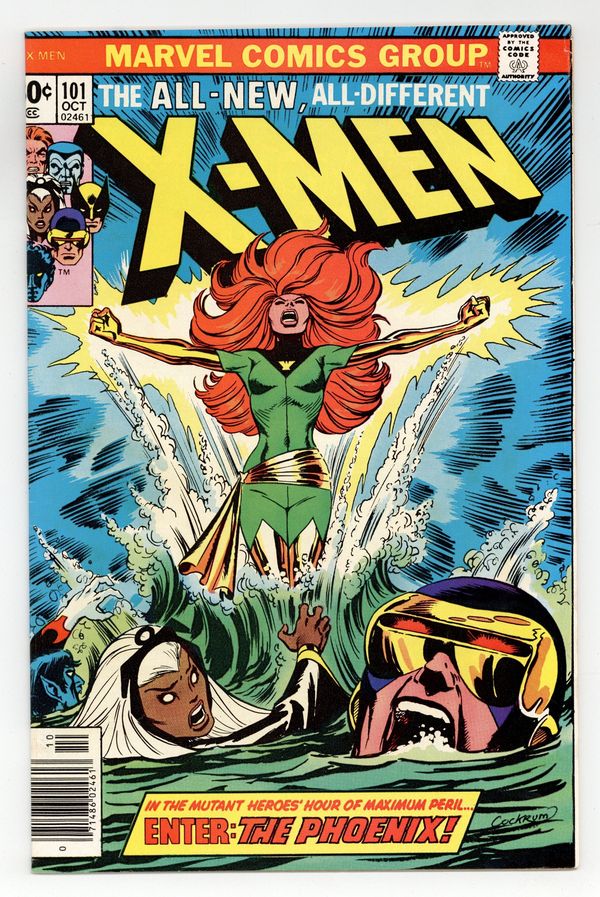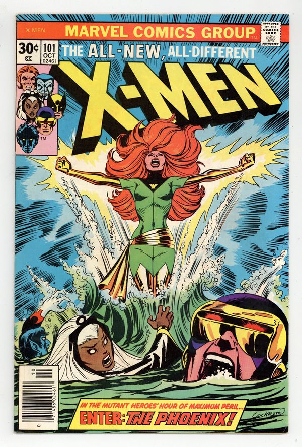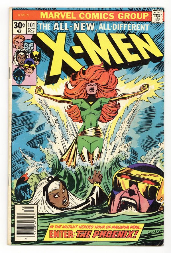 Tags: M’Krann Crystal Saga (Marvel) (part 1), X-Men$380.00"Like a Phoenix, from the Ashes!" Part 1 of 3. Story by Chris Claremont. Art by Dave Cockrum and Frank Chiaramonte. In the startling aftermath of last issue's events, the X-Men crash-land back on Earth, but they soon learn that a unbelievable change has come over Jean Grey. Don't miss the rise of the Phoenix! Meanwhile, the team decides to take in some much needed R&R. They head to Ireland to Banshee's ancestral home. However, nothing but danger and death wait for them here. 36 pages, full color. NOTE: 1st appearance of Phoenix, 1st appearance of Black Tom Cassidy, and Juggernaut cameo. Cover price $0.30.
