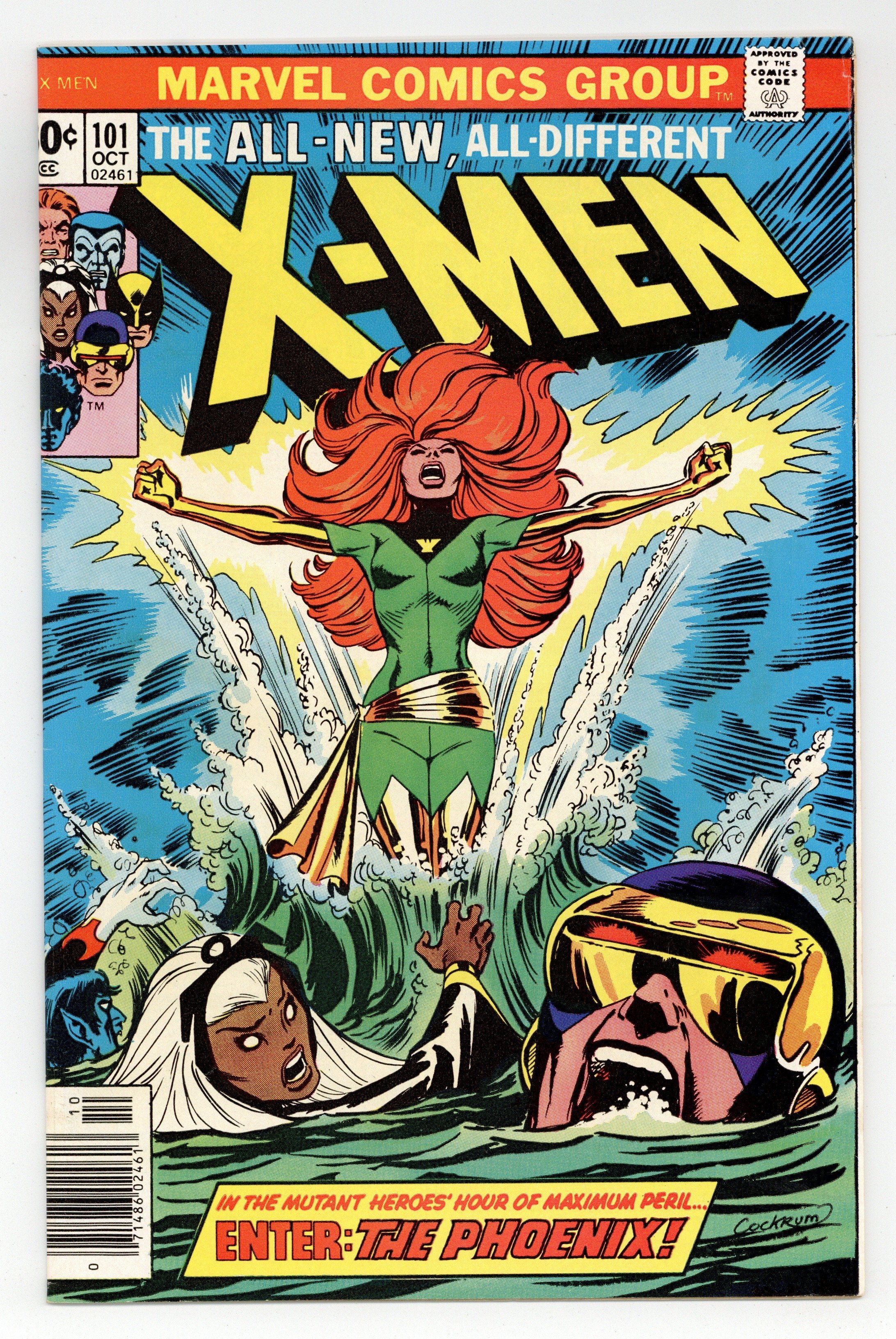 "Like a Phoenix, from the Ashes!" Part 1 of 3. Story by Chris Claremont. Art by Dave Cockrum and Frank Chiaramonte. In the startling aftermath of last issue's events, the X-Men crash-land back on Earth, but they soon learn that a unbelievable change has come over Jean Grey. Don't miss the rise of the Phoenix! Meanwhile, the team decides to take in some much needed R&R. They head to Ireland to Banshee's ancestral home. However, nothing but danger and death wait for them here. 36 pages, full color. NOTE: 1st appearance of Phoenix, 1st appearance of Black Tom Cassidy, and Juggernaut cameo. Cover price $0.30.