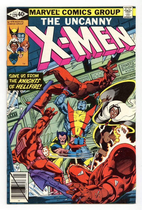Starts Dec 15 Direct Edition. The Dark Phoenix Saga: Part 1 of 9 - "God Spare the Children!" Story by Chris Claremont and John Byrne. Art by John Byrne and Terry Austin. This issue begins arguably the greatest and most tragic X-Men adventure of all time - The Dark Phoenix Saga. While the X-Men attempt to recruit a "New Mutant" by the name of Kitty Pryde, Wolverine, Colossus, and Storm are suddenly attacked by unknown assailants. What do these armored foes want, and who is the White Queen? 36 pages, full color. NOTE: 1st appearance of Kitty Pryde and Emma Frost, the White Queen. Cover price $0.40.