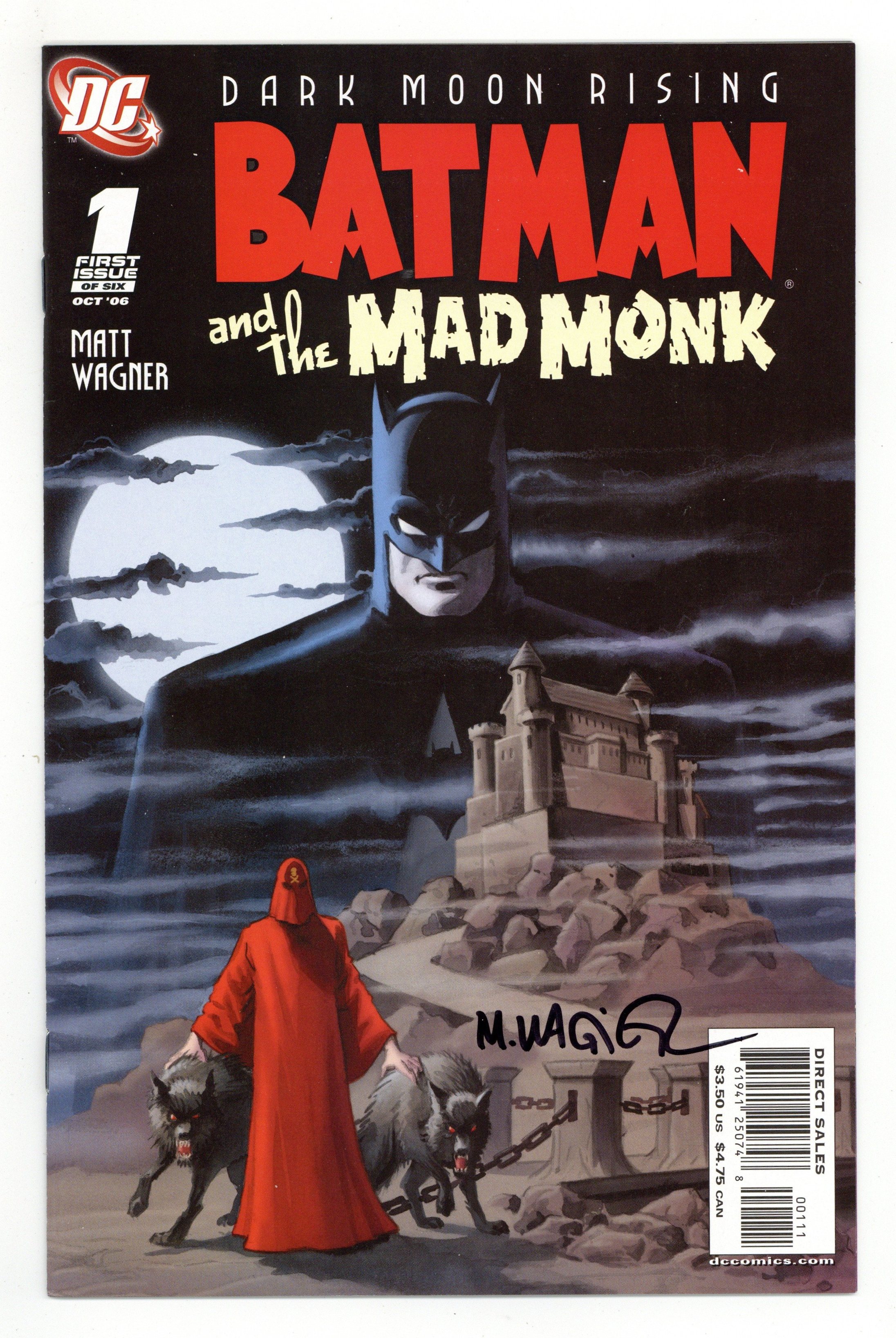 Written by Matt Wagner. Art and cover by Wagner. Join Matt Wagner as he revisits the early career of the young Batman in another adventure inspired by DC's Golden Age in this blood-curdling sequel to BATMAN AND THE MONSTER MEN! The Dark Knight is learning that there are more twisted faces of evil than those worn by the street criminals and mobsters of Gotham. Now, Batman must counter sinister machinations and new dimensions of wickedness as he confronts the hooded menace of the Mad Monk! ? 1 of 6 ? 32 pg, FC Cover price $3.50.