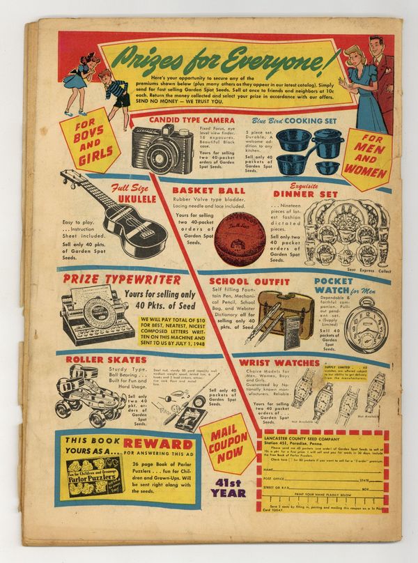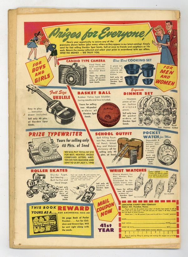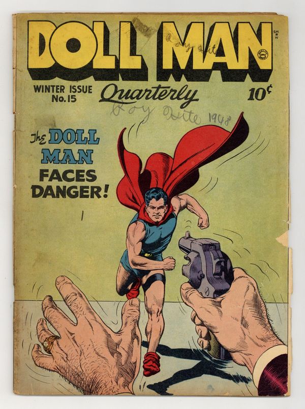 The Doll Man stars in "The Boy Who Knew All the Answers," "The Man in the Iron Mask," and "The Undertaker!" Torchy untitled back-up story (art by Bill Ward). Cover price $0.10.