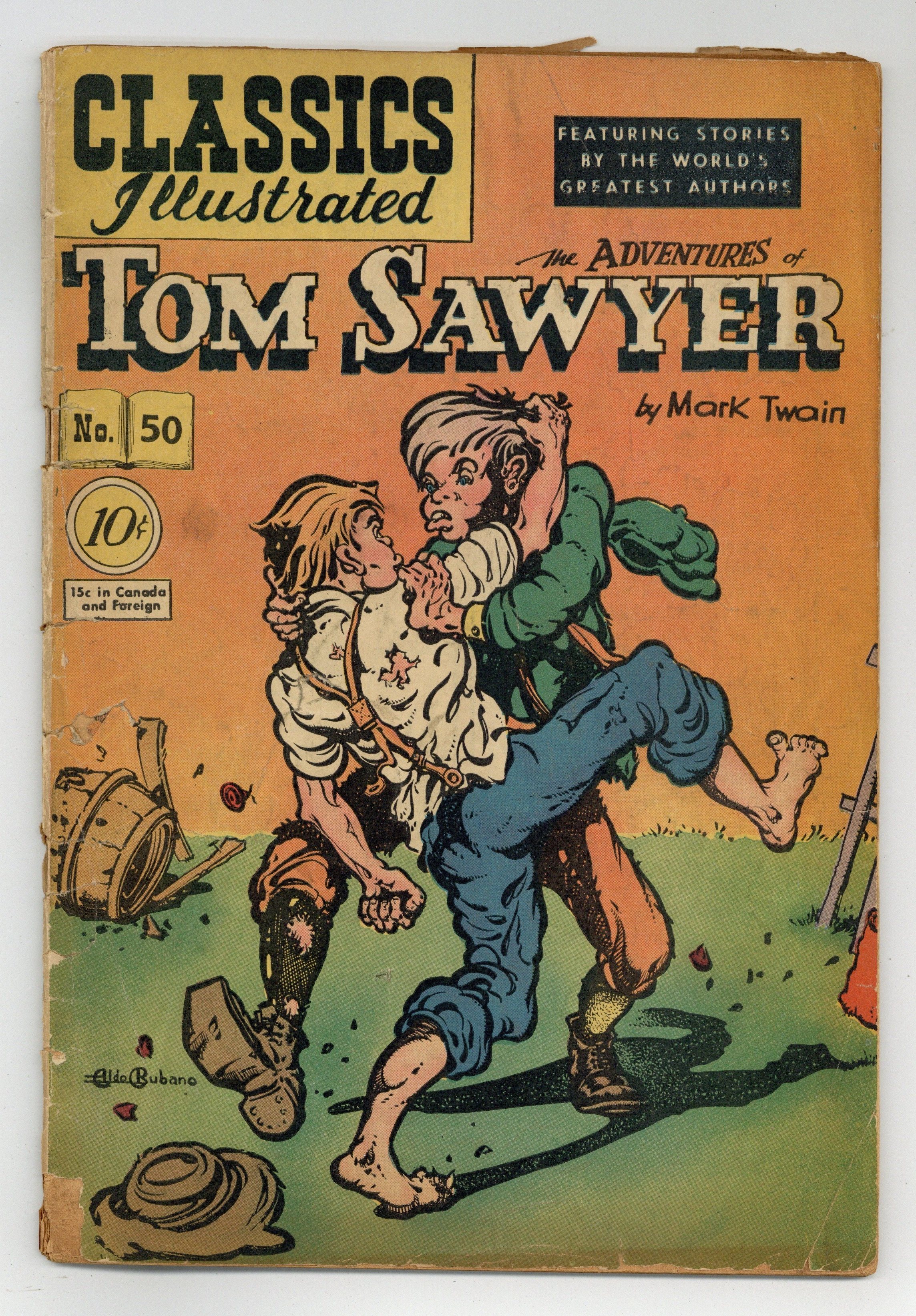 Published Sep 1948 by Classics Illustrated.$2.50Adventures of Tom Sawyer, 1st Printing, Line Drawing Cover. Cited in "Seduction of the Innocent". (HRN 51, 9/48). Cover price $0.10.