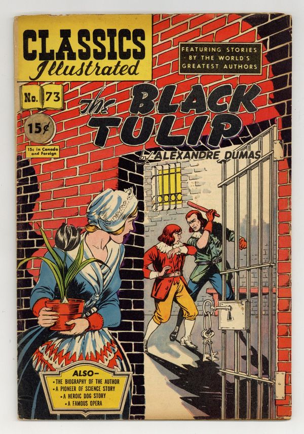 Published Jul 1950 by Classics Illustrated.$35.00The Black Tulip, 1st (and only) Printing, Line Drawing Cover. (HRN 75, 7/50). Cover price $0.10.