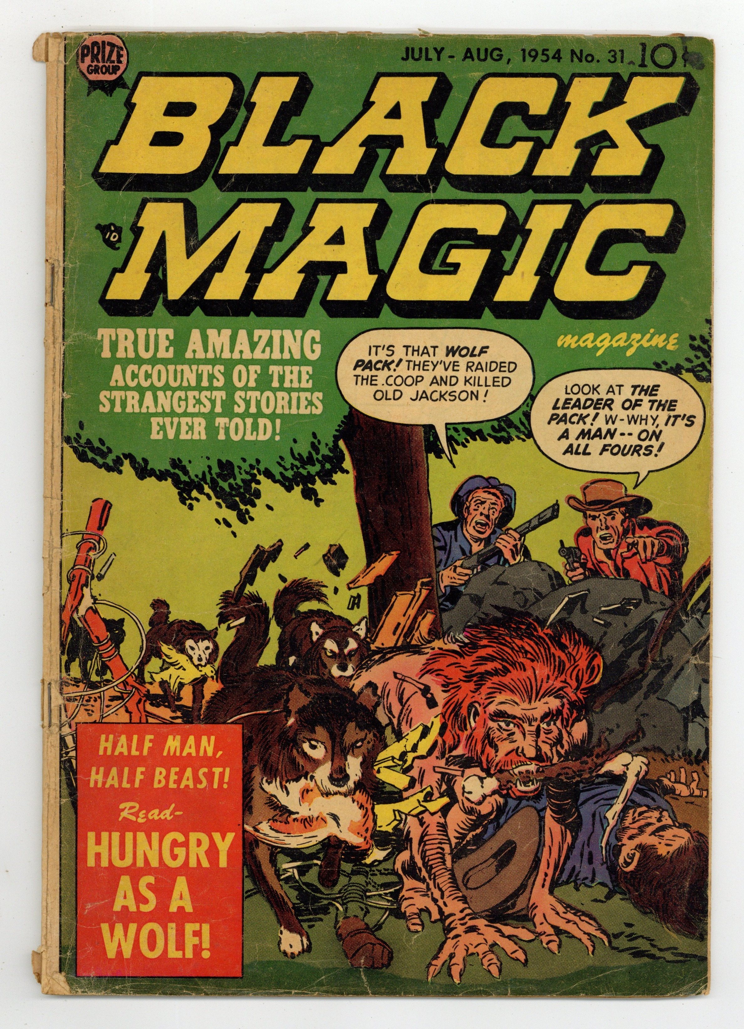Cover by Jack Kirby. Art by Ernie Schroeder, Mort Meskin, Joe Simon and Jack Kirby. Captain America creators Joe Simon and Jack Kirby present their own contribution to the horror comics trend of the 1950s, featuring tales of ghosts and the paranormal. Issue # 31 on cover; listed as Vol. 5, issue #1 in indicia. A deformed man is the object of cruel attention. Alien insects conquer Earth and find humans particularly delicious. A man is discovered running with a wolf pack. Gargoyle; A Dish of Jello; Slaughter-House!; The Half-Men!; Three Million Bucks; Hungry as a Wolf! 32 pages, Full Color. Cover price $0.10.