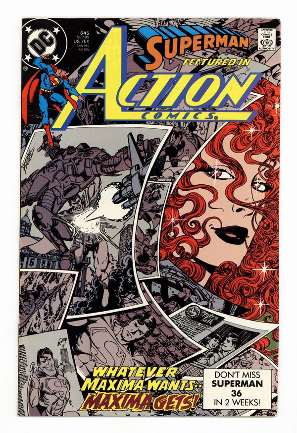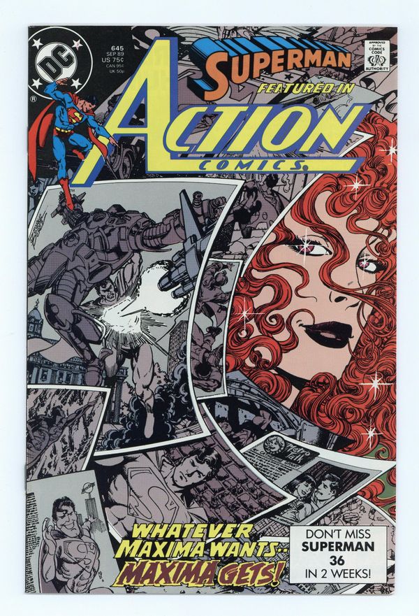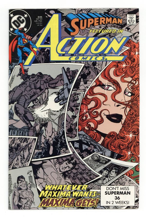 Tags: Superman$6.00Maxima (in her 1st appearance) tries to flush out Superman in "My Lady Maxima!" Starman cameo. Story by Roger Stern & George Perez. Art by Perez & Brett Breeding. Cover by Perez. 36 pages, Full Color, $0.75. Cover price $0.75.