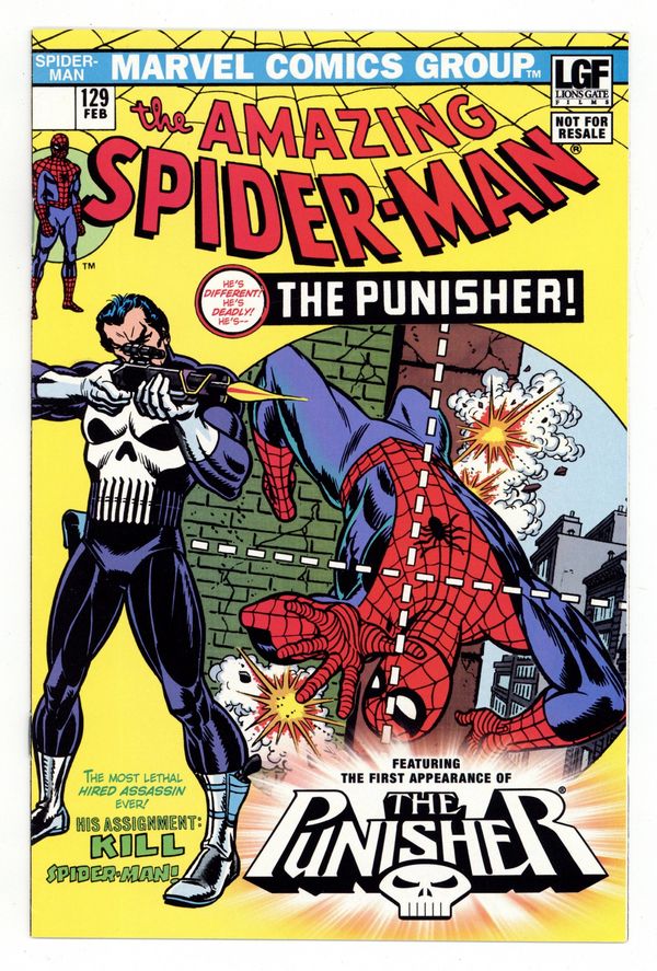 Lion's Gate Films and Marvel combine to reprint this first appearance of the Punisher. Given away at movie theaters to viewers who purchased a ticket for the Punisher movie. First appearances of the Punisher and the Jackal in "The Punisher Strikes Twice." Script by Gerry Conway, pencils by Ross Andru, inks by Frank Giacoia and Dave Hunt. Gil Kane cover. Ralph Macchio letter to the editor.