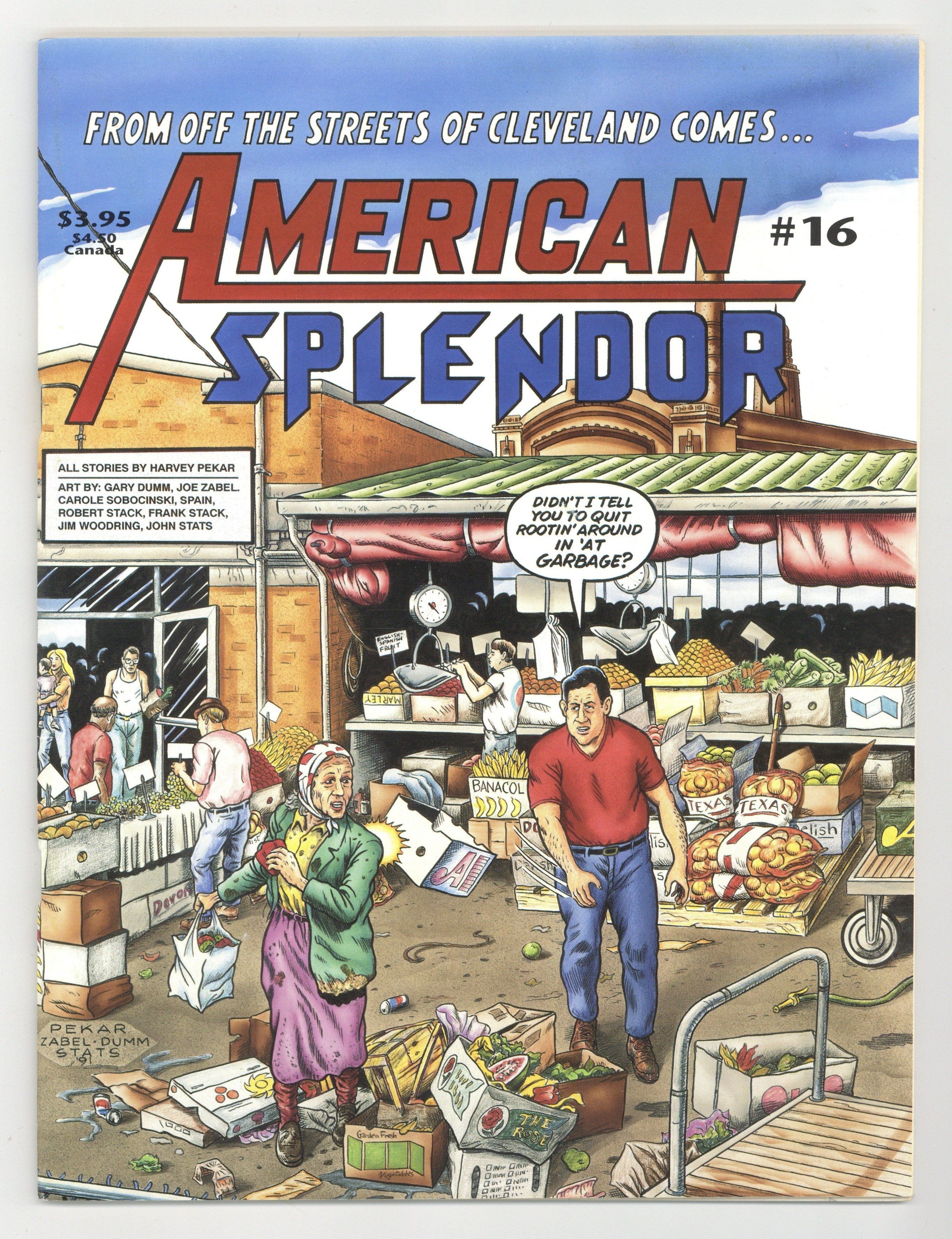 Cover pencils by Joe Zabel, inks by Gary Dumm. Bat, script by Harvey Pekar, pencils by Joe Zabel, inks by Gary Dumm; Harvey's relationship with a divorced woman is falling apart, and there's a bat loose in the house. Self Justification or Anticipating the Critics, script by Harvey Pekar, art by Frank Stack; Harvey is asked why he portrays black people so negatively in his comics. Watching The Media Watchers, script by Harvey Pekar, art by Jim Woodring; Harvey has written an article castigating lazy primetime news reporting. Easter Island, script by Harvey Pekar, pencils by Joe Zabel, inks by Gary Dumm; Sarah has a disappointing trip to New Mexico, remembers Harvey from years back and arranges to meet him. 60 pages, B&W. Cover price $3.95.