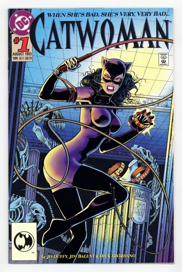 Tags: Embossed Cover$18.00Bane's in charge and Catwoman's stealing on his behalf in "Life Lines Chapter 1: Rough Diamonds!" Part 1 of 4, continued next issue. Script by Jo Duffy, pencils by Jim Balent, inks by Dick Giordano. Balent embossed cover. Cover price $1.95.