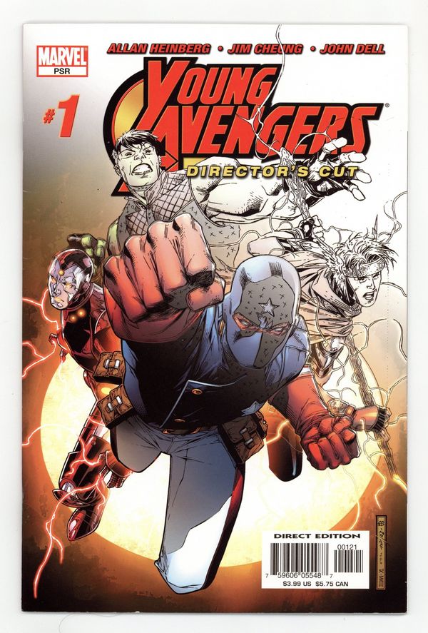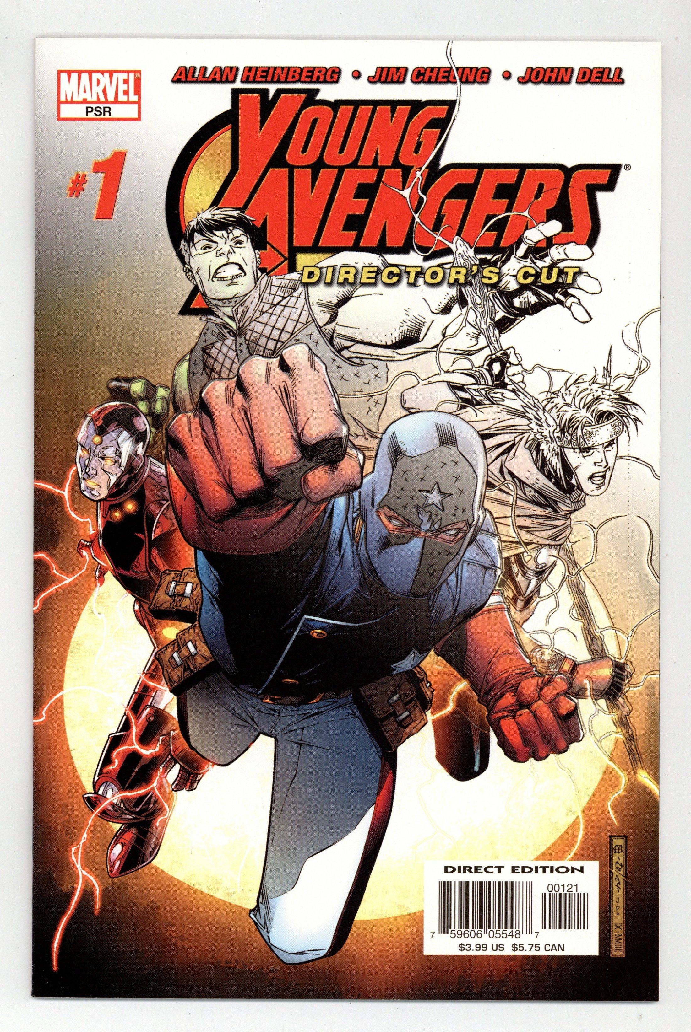 Written by ALLAN HEINBERG Pencils & Cover by JIM CHEUNG In the wake of AVENGERS DISASSEMBLED, a mysterious new group of teen super heroes appears. But who are they? Where did they come from? And what right do they have to call themselves THE YOUNG AVENGERS? Young Gun Jim Cheung and TV superstar writer Allan Heinberg (The O.C., Sex in The City, and Party of Five). This series promises to shock and surprise, so don't miss it!! The Director's Cut features previously unseen character designs and cover sketchs by Jim Cheung and the original unedited script for Young Avengers #1! 48 PGS./Marvel PSR ...$3.99 Cover price $3.99.