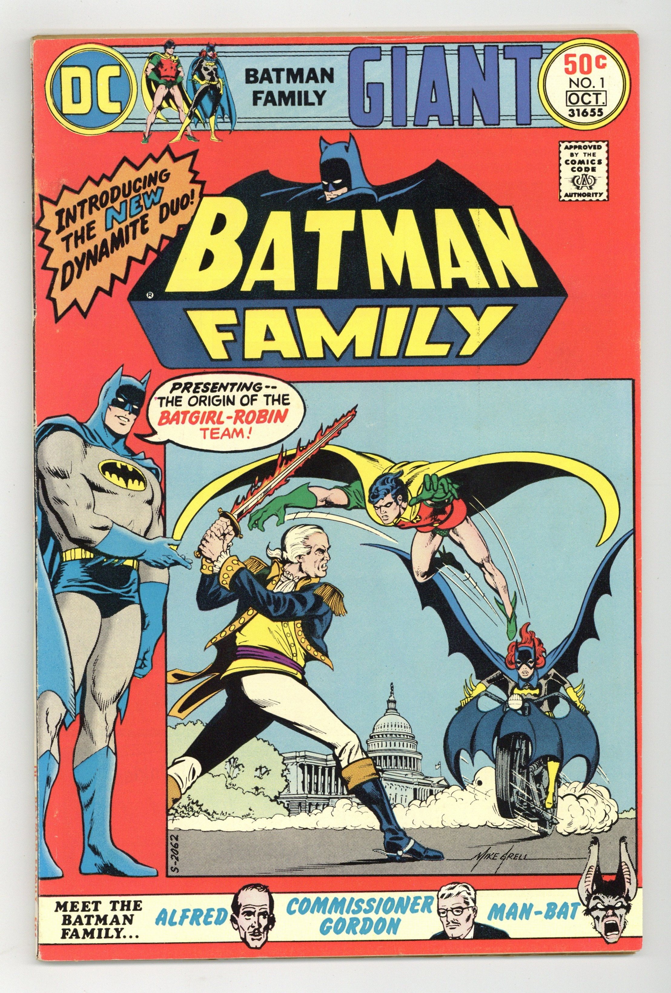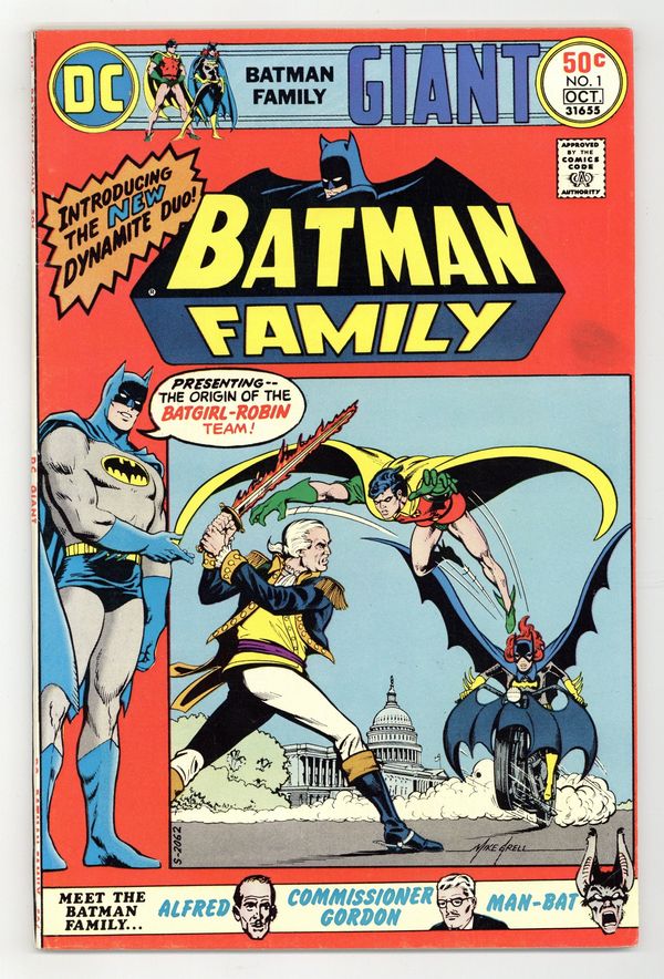 Giant-size issue. Batgirl and Robin star in "The Invader From Hell!" Script by Elliot Maggin, art by Mike Grell. Reprint back-up stories: Alfred stars in "The Great Handcuff King!" (art by Jerry Robinson); Batman and Robin star in "Commissioner Gordon's Death-Threat!" (script by Gardner Fox, pencils by Bob Kane, inks by Joe Giella); Batman stars in "Challenge of the Man-Bat" (script by Frank Robbins, pencils by Neal Adams, inks by Dick Giordano). Grell cover. Cover price $0.50.