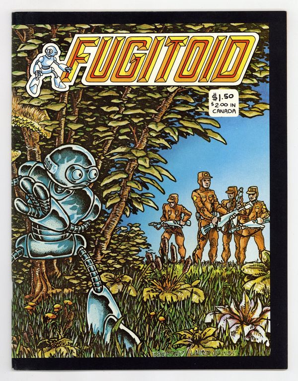 Published 1985 by Mirage Studios.$21.00Story, art and cover by Kevin Eastman and Peter Laird. On a far off world, Dr. Honeycutt is attempting to perfect a mind over matter headband. A freak thunderstorm short circuits his plans and transfers his consciousness to his gardening droid. The authorities believe the droid killed the doctor, putting him/it on the run. After a long chase, they almost have him until the sudden arrival of the Teenage Mutant Ninja Turtles. Story continues in Teenage Mutant Ninja Turtles (1985) #5. 44 pages, B&W. Cover price $1.50.