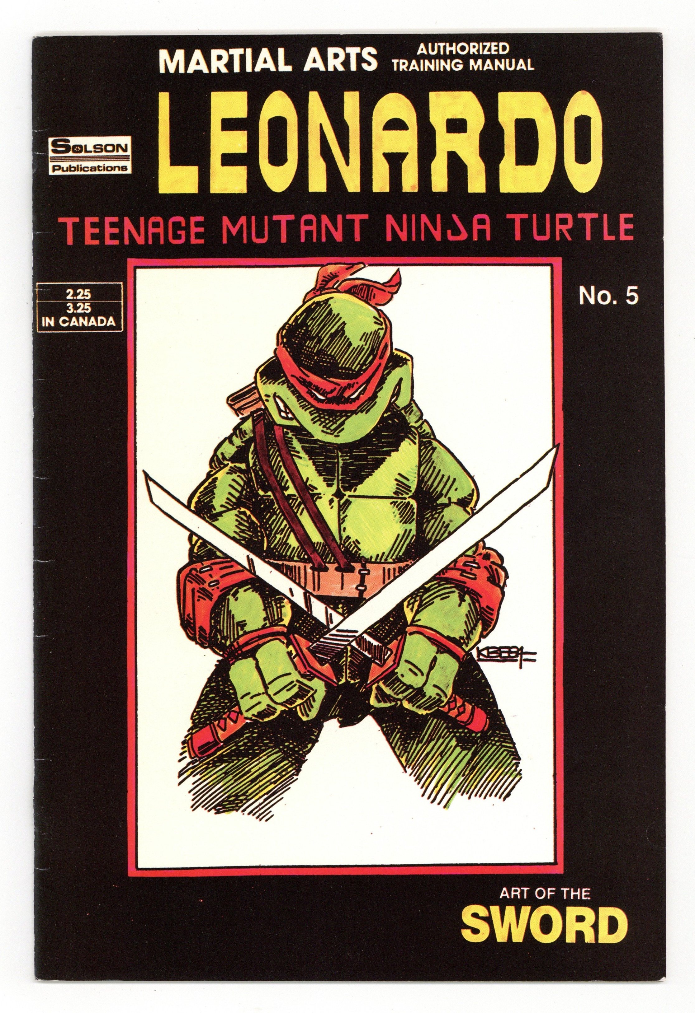 $65.00Leonardo: Art of the Sword. Story by Peter Brody. Art by Cathy Orlando and Jason Rodgers. Cover by Kevin Eastman. A guide to the weapons and martial arts of the Teenage Mutant Ninja Turtles, Leonardo demonstrates the traditional Japanese sword called the katana and the art of swordsmanship. 36 pages, B&W. Cover price $2.25.