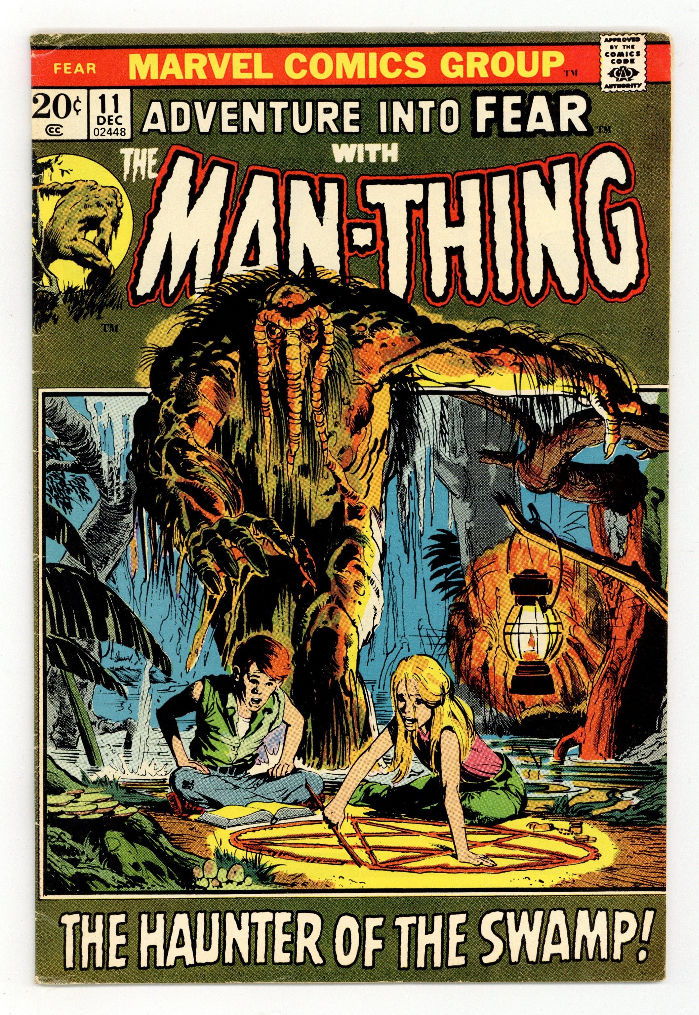 Cover art by Neal Adams. "Night of the Nether-Spawn!", script by Steve Gerber, pencils by Rich Buckler, inks by Jim Mooney; Man-Thing battles Thog the Nether-Spawn, who makes his first appearance; Jennifer Kale also makes her first appearance; Steve Gerber's first full story as a professional writer. "The Spider Waits," art by Fred Kida; Sven's childhood fear of spiders turns to enjoyment as he kills them indiscriminately at his factory cleaning job; He meets a woman who is actually a human spider who lures him into her web, literally. 36 pgs., full color. Cover price $0.20.