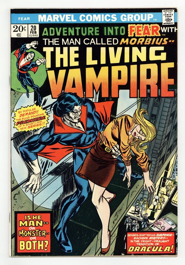 Starts Feb 9 Morbius stories begin: "Morbius the Living Vampire!" Script by Mike Friedrich, pencils by Paul Gulacy, inks by Jack Abel. Cameos by Spider-Man and the Human Torch. Brief X-Men appearance. Reprint back-up story: "Midnight in the Wax Museum!" with art by Richard Doxsee. Gil Kane cover pencils. Cover price $0.20.