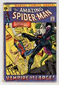 $50.00"Vampire at Large!" Double-Sized issue. Script by Roy Thomas. Pencils by Gil Kane. Inks by Frank Giacoia. Cover by Gil Kane and Frank Giacoia. The Amazing Spider-Man is on the ropes against the Living Vampire! The web-slinger (with his six arms) needs a miracle to survive the fangs of Morbius! And shockingly, he gets one -- that's crazy, green, and covered in scales: the Lethal Lizard! After a wild free-for-all, the wall-crawler and the Lizard drive Morbius out of Dr. Connors' summer home on Long Island. But they can't let the Living Vampire roam around New York City unchecked. Plus, the unlikely allies need a sample of Morbius' blood -- for the serum that might remove Peter Parker's extra arms! Wow, is this mission impossible for your friendly neighborhood Spider-Man? Good luck to the web-spinner and the Lizard too! Origin of Morbius. Cameo appearances by Gwen Stacy, Aunt May, J. Jonah Jameson, and Joe Robertson. Flashback cameos by Martine Bancroft and Emil Nikos. (Notes: Morbius appears next in Marvel Team-Up #3. Morbius' name is misspelled on the cover. This issue was reprinted in Marvel Tales 253.) 52 pages. Cover price $0.25.