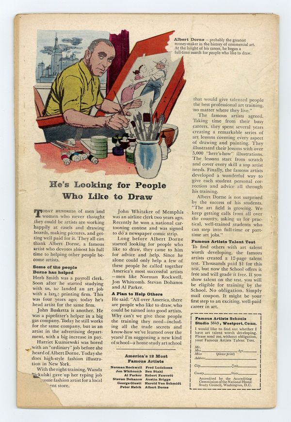 Ends Jan 26 9:33 PM CST Bid History 21 bids Current Bid $41 Your Secret Max Bid If you'd like to bid, please log in or register. Cover pencils by Jack Kirby, inks by Dick Ayers. The Human Torch stars in "The Sorcerer and Pandora's Box," script by Stan Lee (plot) and Robert Bernstein [as R. Berns] (script), pencils by Jack Kirby, inks by Dick Ayers; The Human Torch fights a sorcerer that unleashes the evils imprisoned in Pandoras Box for his own profit; Fantastic Four guest appearance. "The Comic" text story. "Earth Is Off-Limits!", script by Stan Lee, art by Steve Ditko; Space explorers discover life on a far off planet, but mission control panics at the thought of alien germs loose on Earth and so forbids them to return. "Time Was...", script by Stan Lee (plot) and Larry Lieber (script), pencils by Larry Lieber, inks by Sol Brodsky; A scientist builds a time machine and travels to prehistoric times; When he kills an attacking caveman he unknowingly kills his own human ancestor, meaning that he becomes a Neanderthal. 36 pgs., full color. Cover price $0.12.