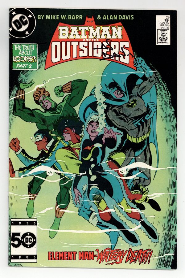 On the trail of Emily Briggs, the team must battle one of their own in "The Truth About Looker, Part 2: The People of the Abyss!" Part 2 of 4, continued from the previous issue. Story continues next issue. Script by Mike W. Barr, art by Alan Davis. Davis cover. Cover price $0.75.