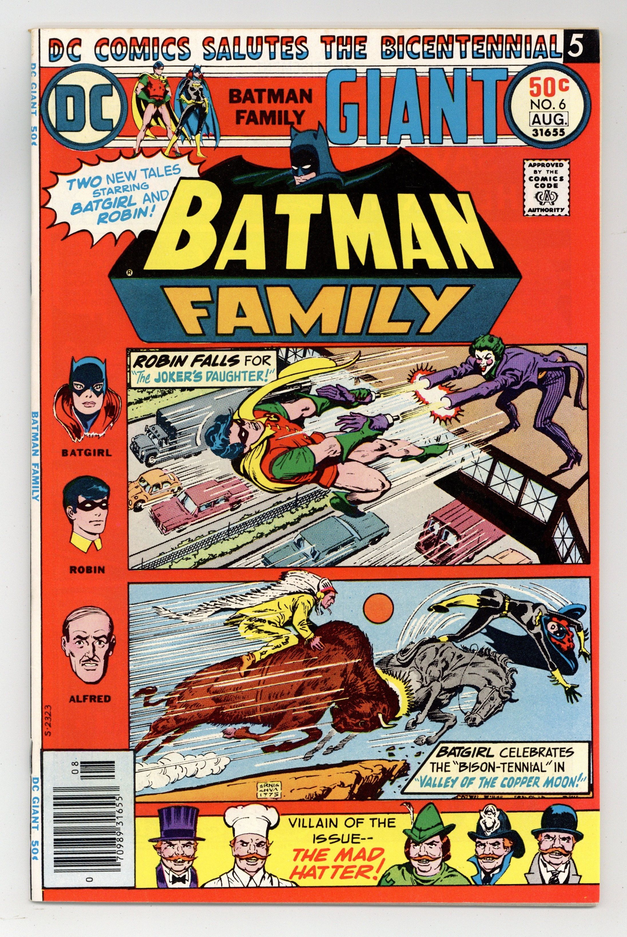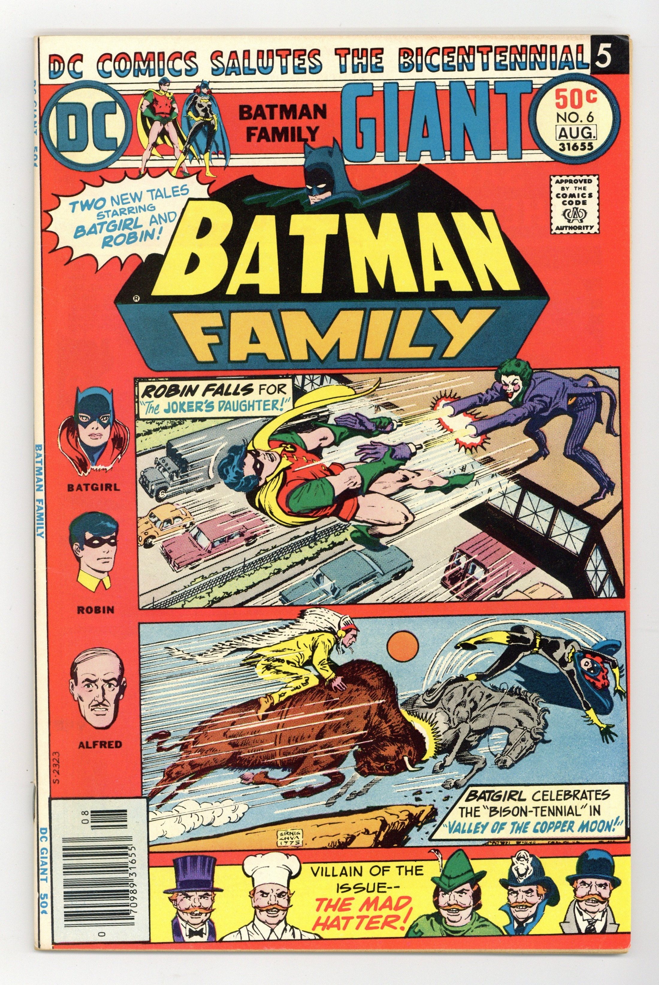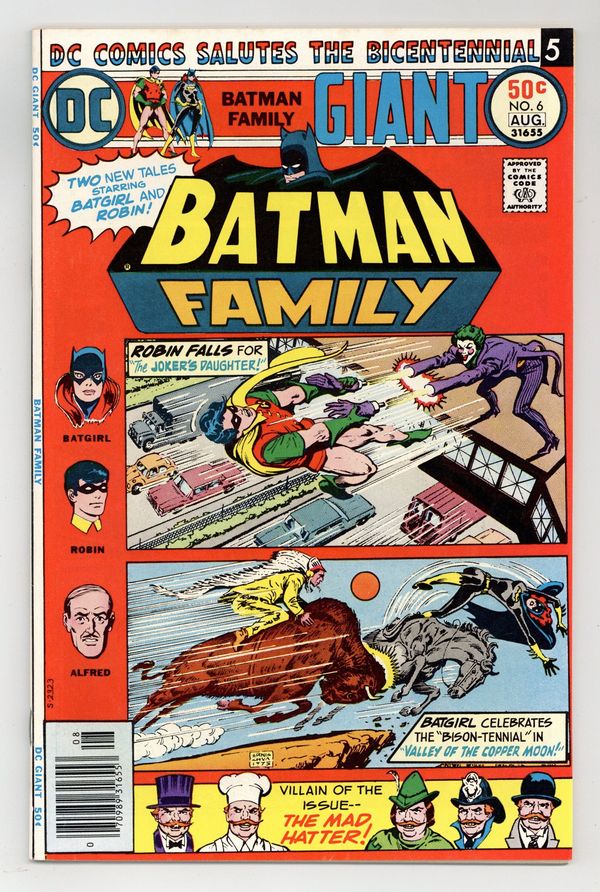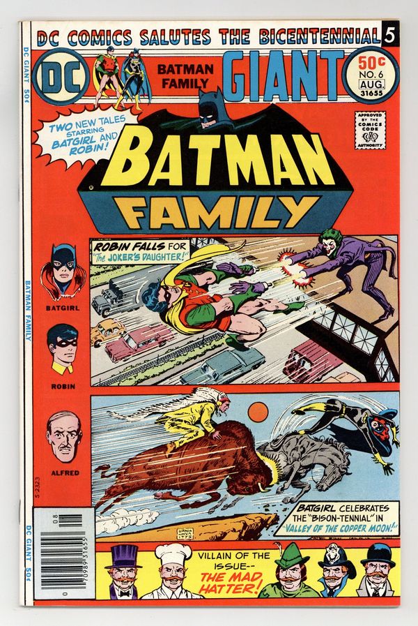 Giant-size issue. Batgirl stars in "Valley of the Copper Moon!" Script by Elliot Maggin, pencils by Jose Delbo, inks by Vince Colletta. Robin stars in "The Joker's Daughter!" Script by Bob Rozakis, pencils by Irv Novick, inks by Frank McLaughlin (1st appearance). Reprint back-up stories: Alfred stars in "In the Soup!" with art by Jerry Robinson (from Batman 32); Batman and Robin star in "The New Crimes of the Mad Hatter" (from Batman 161). Ernie Chan (as "Ernie Chua") cover. Cover price $0.50.