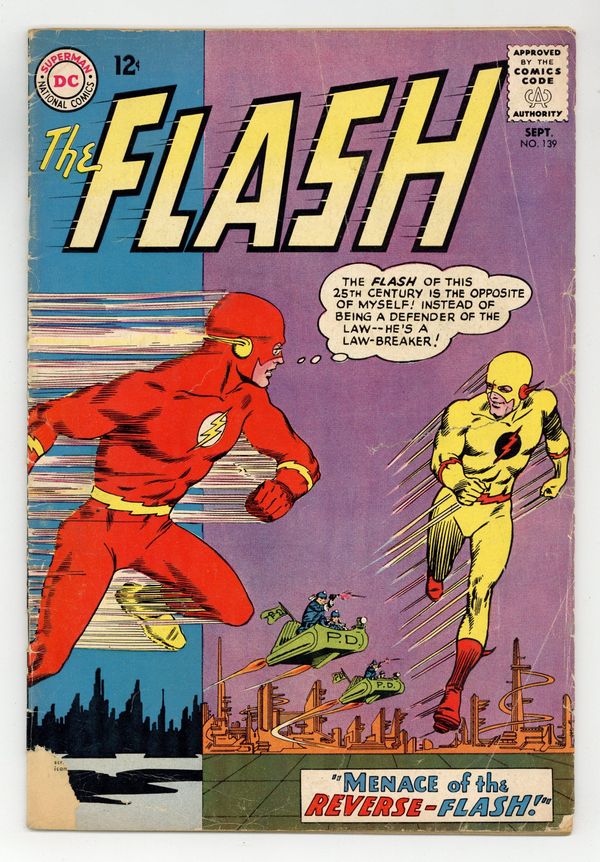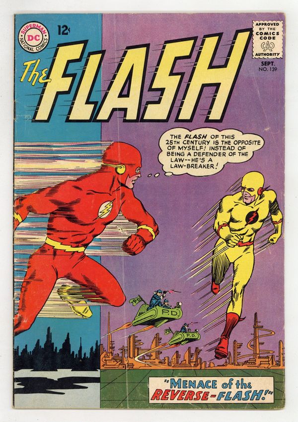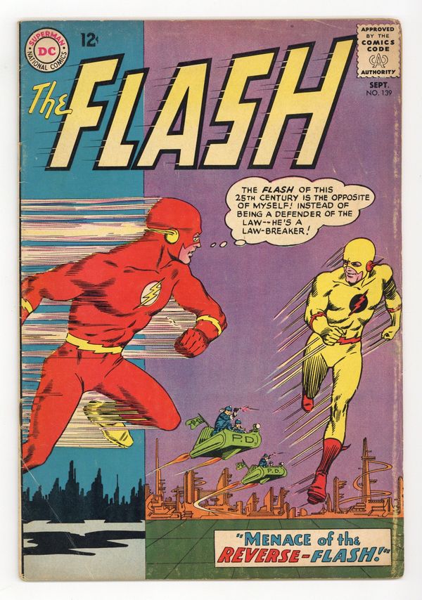 Cover pencils by Carmine Infantino, inks by Murphy Anderson. 1st appearance of Reverse Flash in Menace of the Reverse Flash, script by John Broome, pencils by Carmine Infantino, inks by Joe Giella; A time capsule sent directly to the future results in the creation of a new menace for the Flash...Professor Zoom, the Reverse-Flash. Palisades Amusement Park ad with Superman. 36 Pages, Full Color. Cover price $0.12.