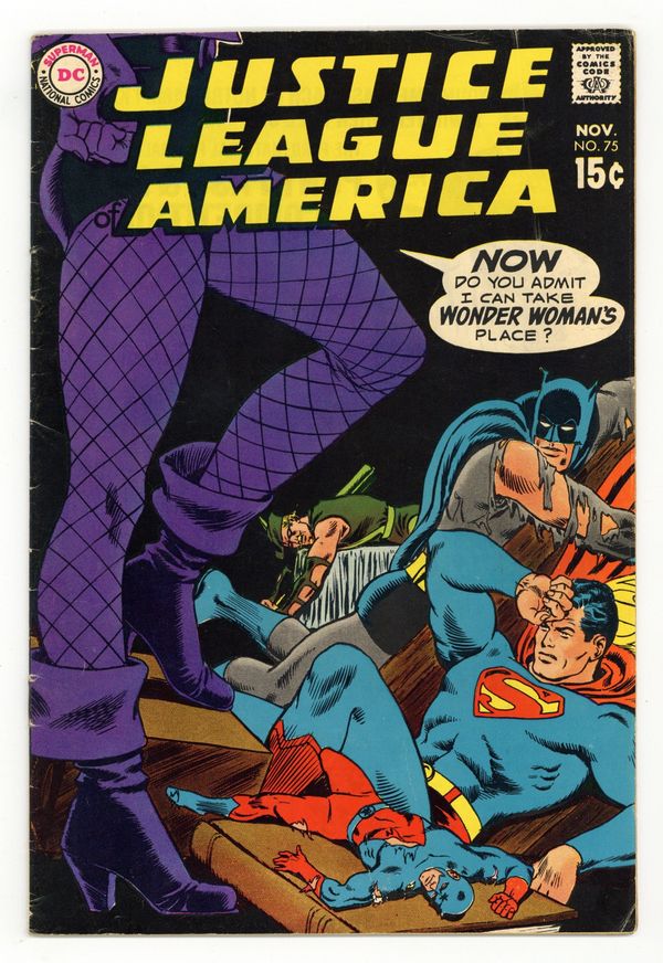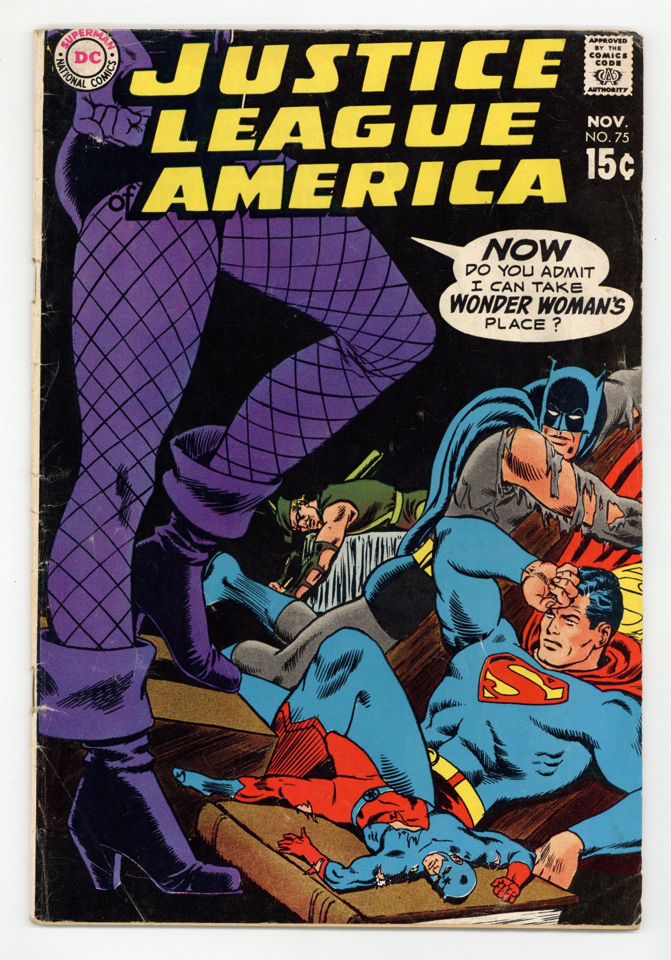 2nd appearance new Green Arrow costume (see Brave and the Bold 85 for the first). Cover pencils by Carmine Infantino, inks by Murphy Anderson. In Each Man There Is a Demon, script by Denny O'Neil, pencils by Dick Dillin, inks by Joe Giella; Black Canary joins the JLA after traveling to Earth 1 from Earth 2; The JLA must battle evil versions of themselves, and Black Canary discovers she's gained the power of a sonic scream as a result of crossing over to Earth-1. Letters to the editor from comics writers Alan Brennert and Martin Pasko. 36 pgs. $0.15. Cover price $0.15.