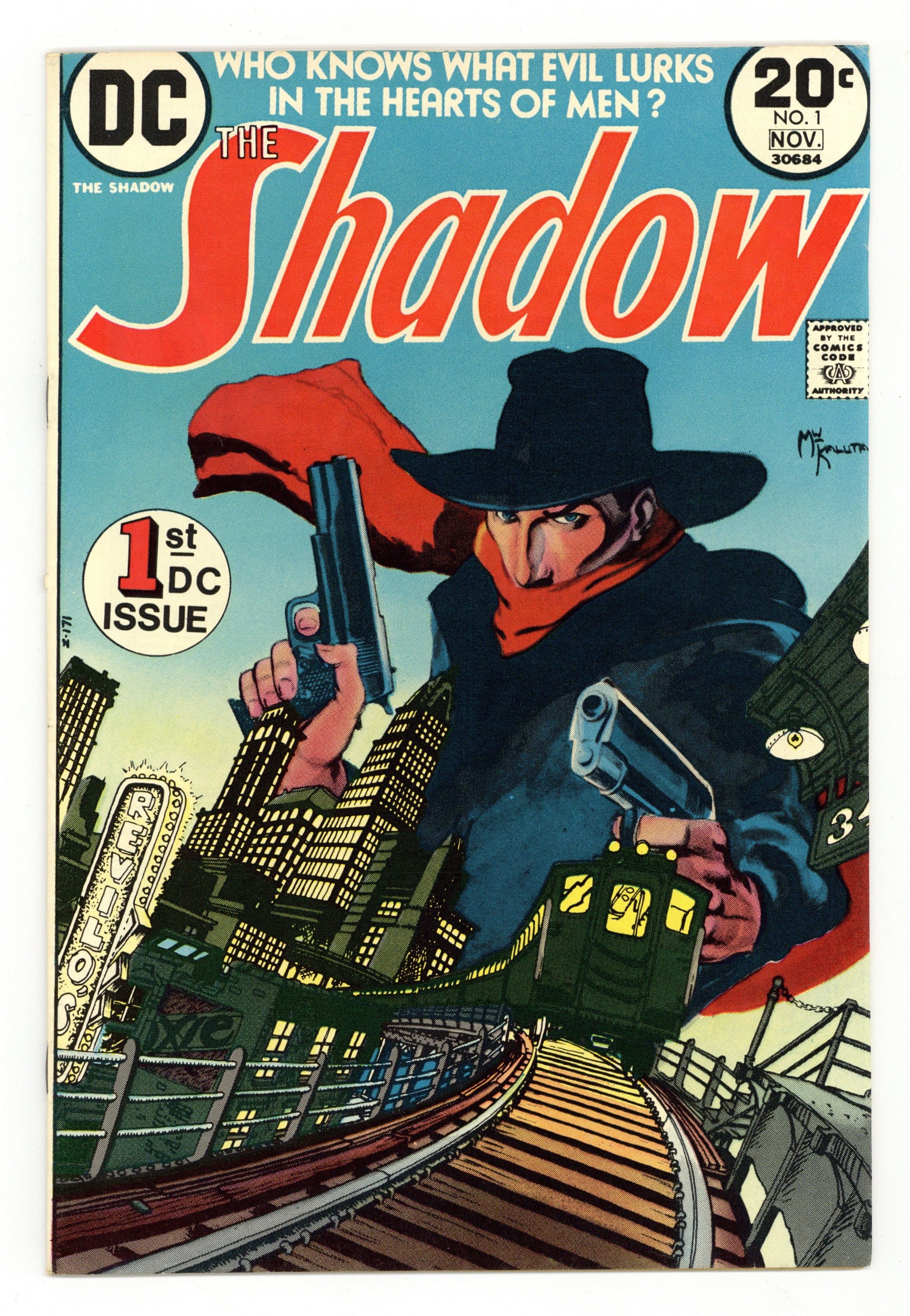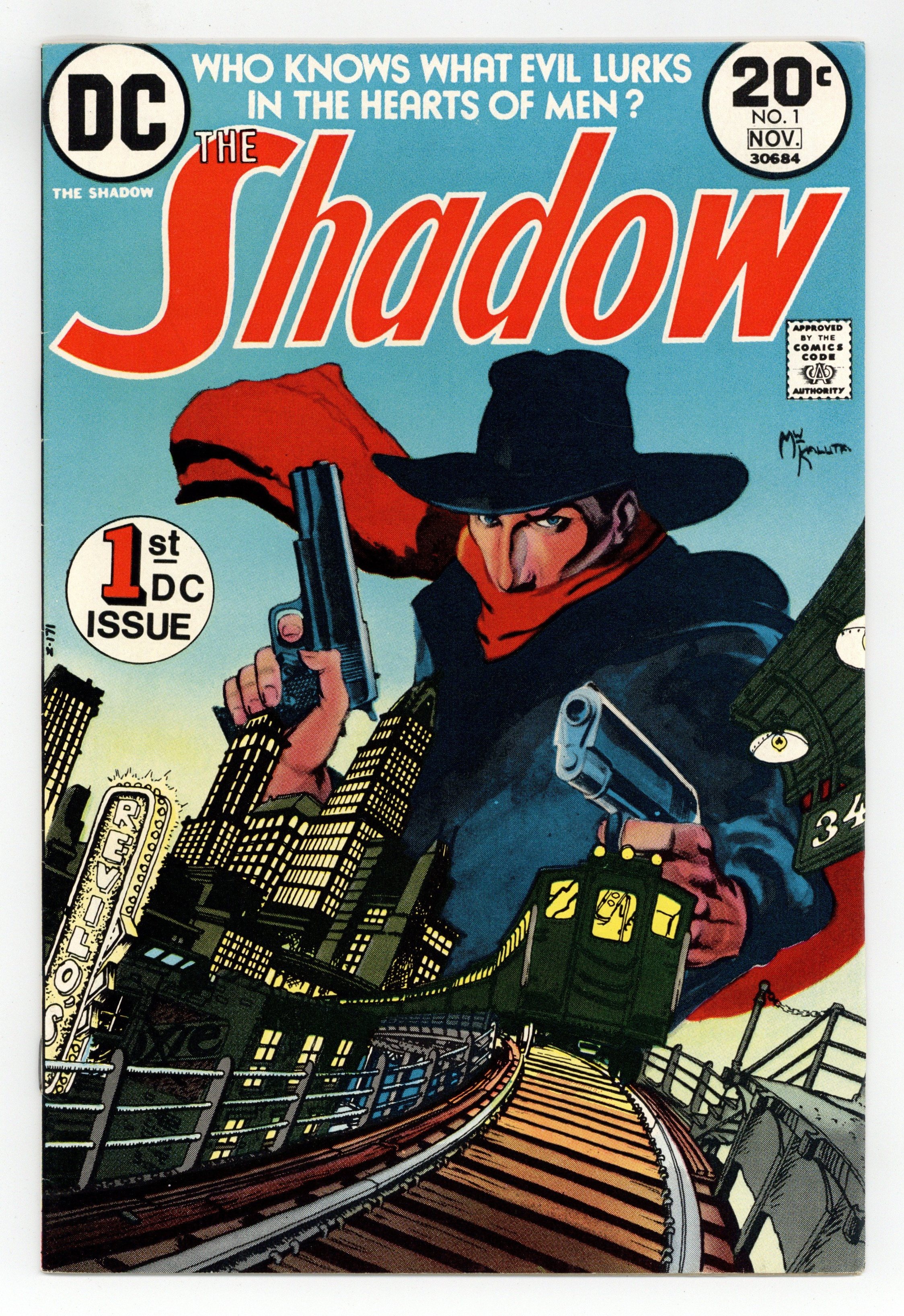 "The Doom Puzzle." DC's faithful take on '30s radio star The Shadow makes its debut, showcasing beautifully O'Neil's snappy dialogue and Kaluta's gorgeous artwork. The Shadow and his agents stop an armored car robbery that was planned by a Wall Street stockbroker. Script by Denny O'Neil, art by Michael Kaluta. Cover by Kaluta. Cover price $0.20.