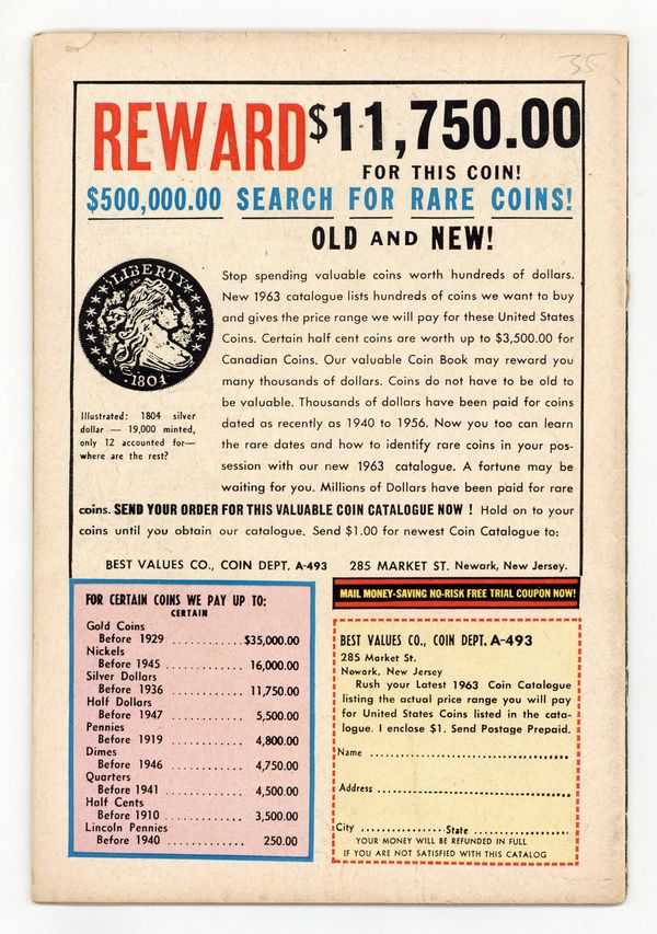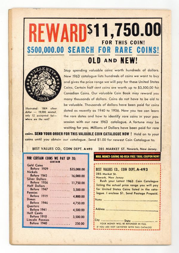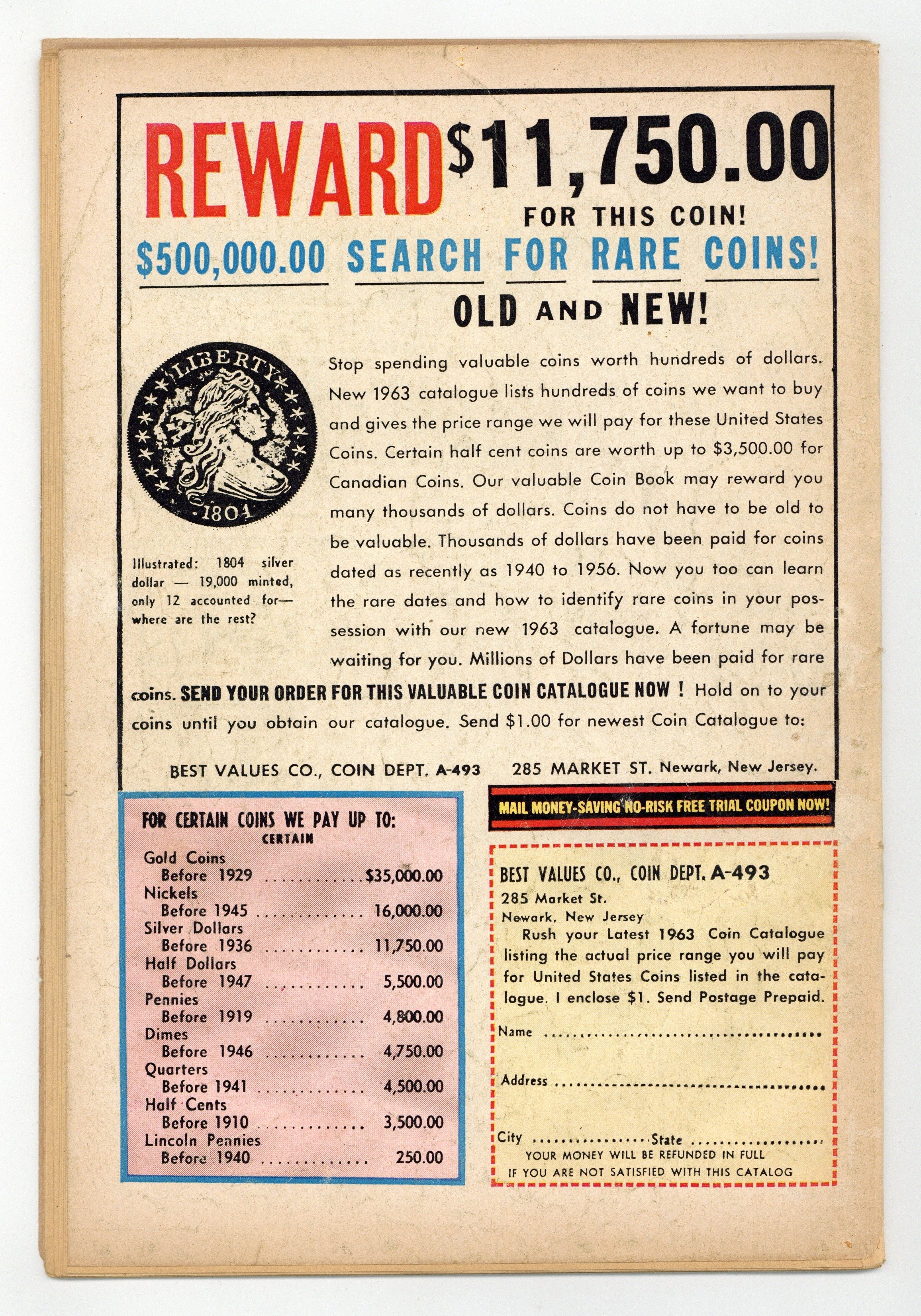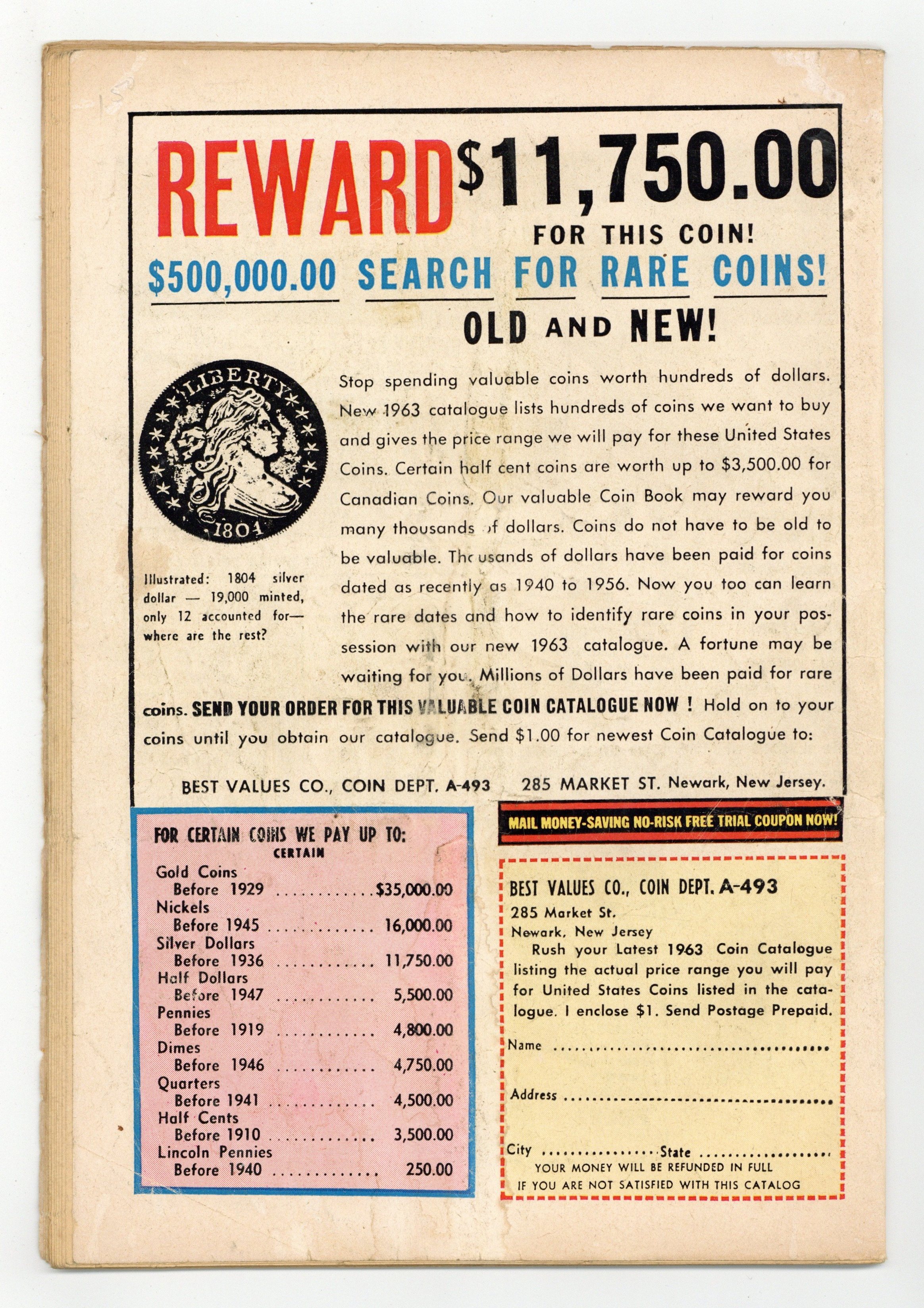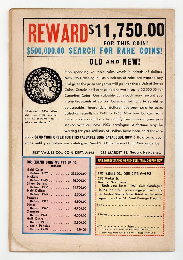 Cover art by Kurt Schaffenberger. The Titanic Twins! [The Amazing Story of Superman-Red and Superman-Blue! part 1], script by Leo Dorfman, pencils by Curt Swan, inks by George Klein; Superman splits into two Supermen in this classic, oft-reprinted story. The Anti-Evil Ray! [The Amazing Story of Superman-Red and Superman-Blue! part 2]; Luthor, Brainiac, Phantom Zoners, Khruschev, and Castro reform; Lex Luthor cures all illnesses. A Tree Grows on Second Street public service announcement, script by Jack Schiff, art by Sheldon Moldoff. The End of Superman's Career! [The Amazing Story of Superman-Red and Superman-Blue! part 3]; The Supermen marry Lois Lane and Lana Lang; Jimmy Olsen marries Lucy Lane; Mr. Mxyzptlk reforms. Super-Turtle humor page by Henry Boltinoff. 36 Pages, Full Color. Cover price $0.12.