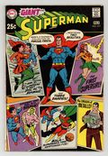 Tags: Giant-Sized Issue, Superman$18.00Cover pencils by Curt Swan, inks by Vince Colletta. DC Giant featuring reprinted stories of firsts and origins: The Outlaws From Krypton!, script by Bill Finger, pencils by Wayne Boring, inks by Stan Kaye; Superman's first Kryptonian foe. The Girl in Superman's Past!, script by Bill Finger, pencils by Wayne Boring, inks by Stan Kaye; Superman recalls his college romance with Lori Lemaris, a mermaid from sunken Atlantis. The Super-Duel in Space, script by Otto Binder, art by Al Plastino; While on an experimental rocket, Clark and Lois encounter the alien Brainiac, who plans to shrink and bottle the great cities of Earth and then use them to repopulate his planet. The First Supergirl!, script by Otto Binder, pencils by Dick Sprang, inks by Stan Kaye; Supergirl created by Jimmy's wish on magic totem. Superman and Supergirl pinup by Jim Mooney. The Menace of Metallo!, script by Robert Bernstein, art by Al Plastino; Criminal John Corben, who is nearly killed in an auto accident, is given a robot body powered by uranium. 68 Pages, Full Color. Cover price $0.25.