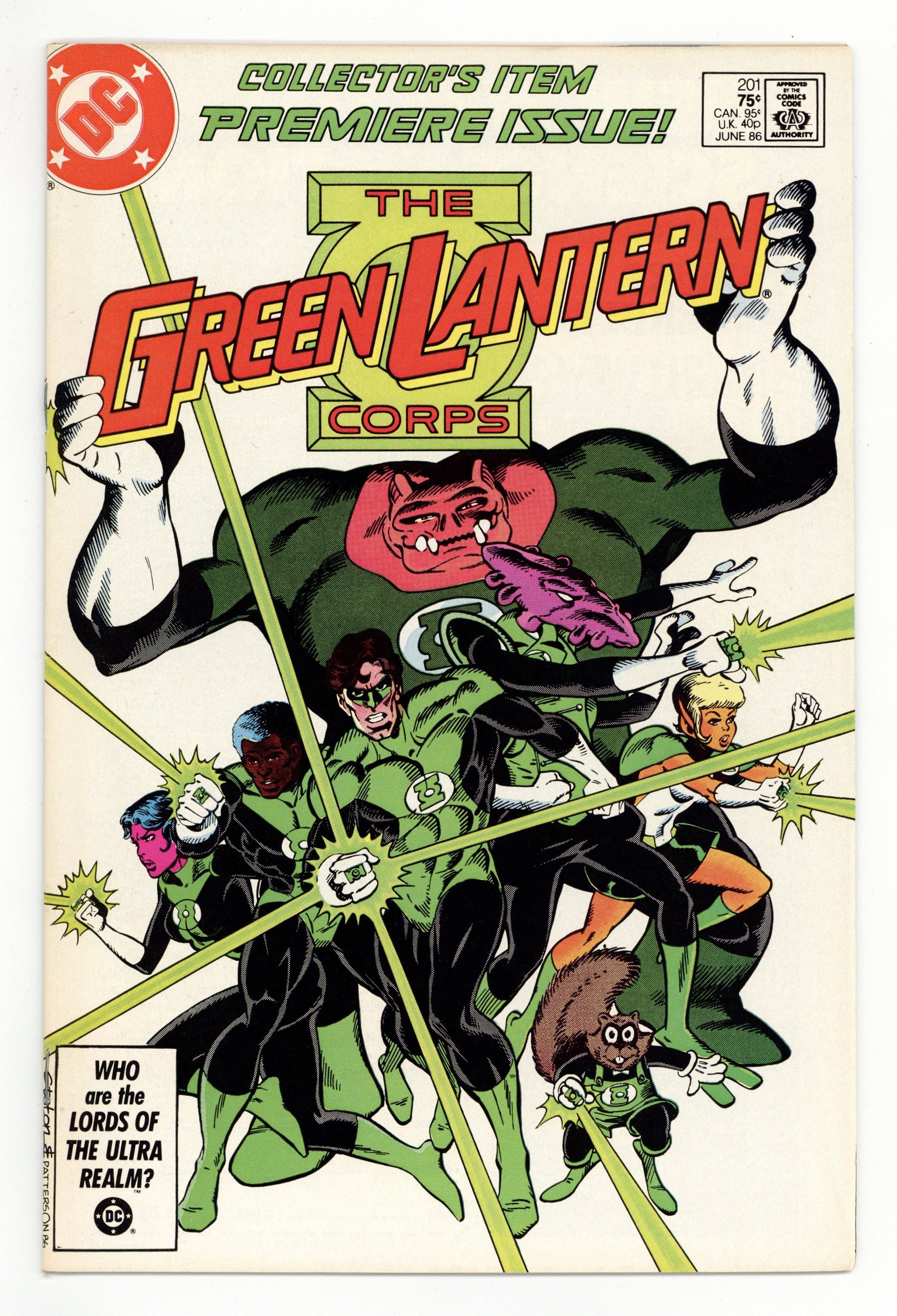 Direct Edition. "Setting Up Shop." Seven villains battle seven Green Lanterns. With this issue, this series is now called the Green Lantern Corps. Script by Steve Englehart, pencils by Joe Staton, inks by Mark Farmer. Cover by Staton and Bruce Patterson. Cover price $0.75.