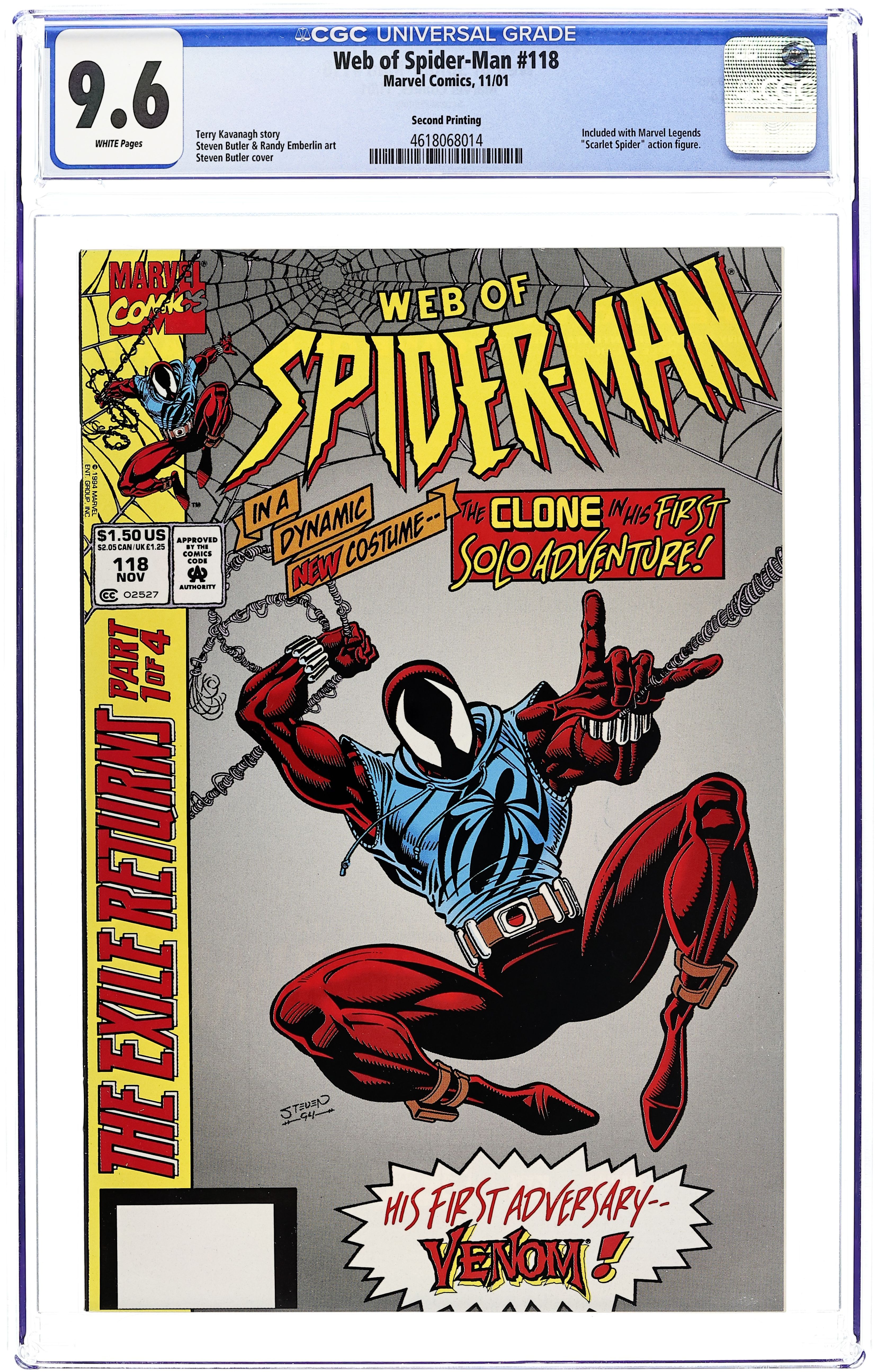 2nd printing (Blank barcode). Bonus 32-page comic book packaged with a Toy Biz Action Figure - Spider-Man Classic "Scarlet Spider" - exclusive to KB Toys. Cover price $1.50.
