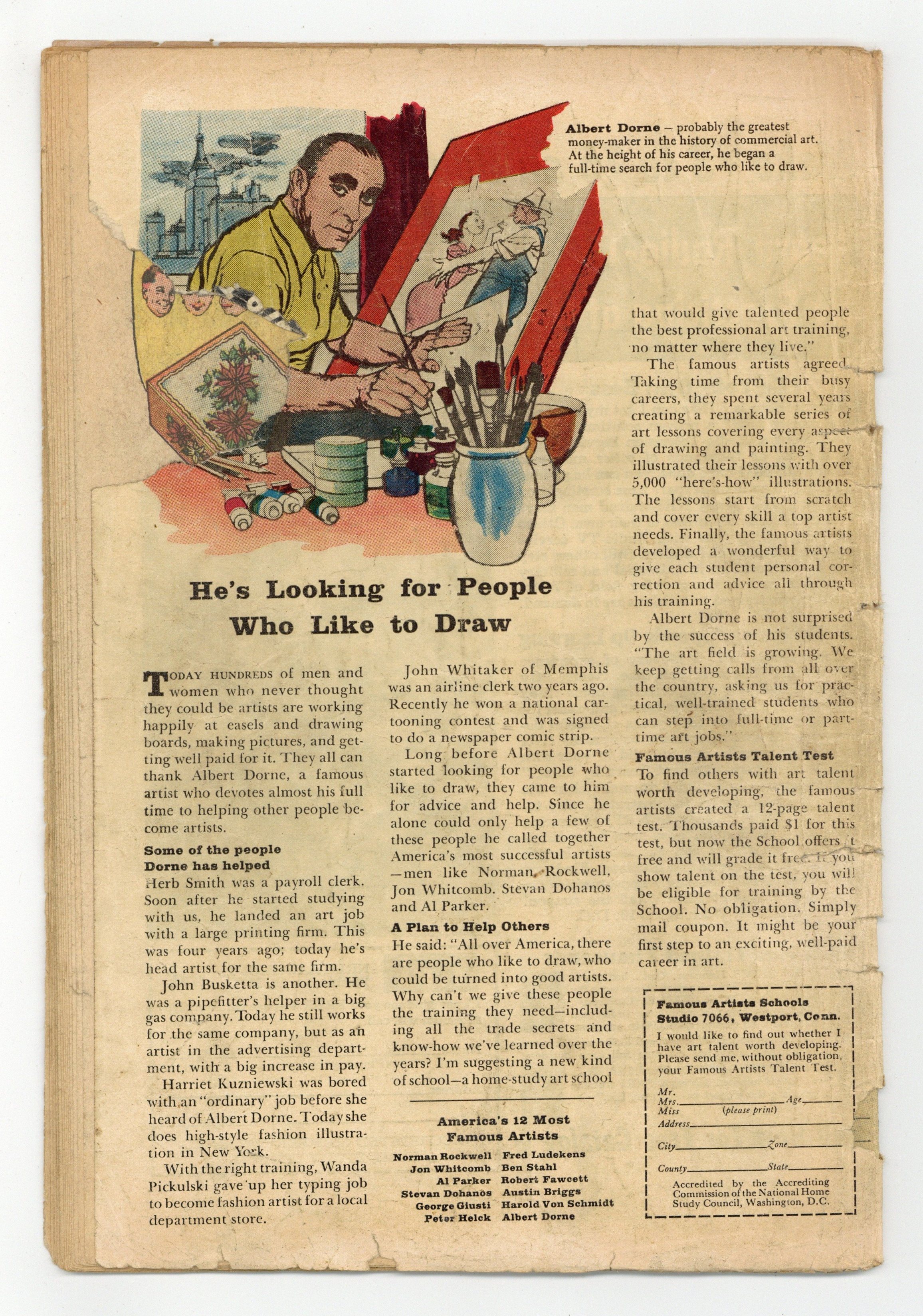 Interior complete. Full length spine split. Centerfold detached at one staple. Tape on interior cover and pages. Oxidation.
