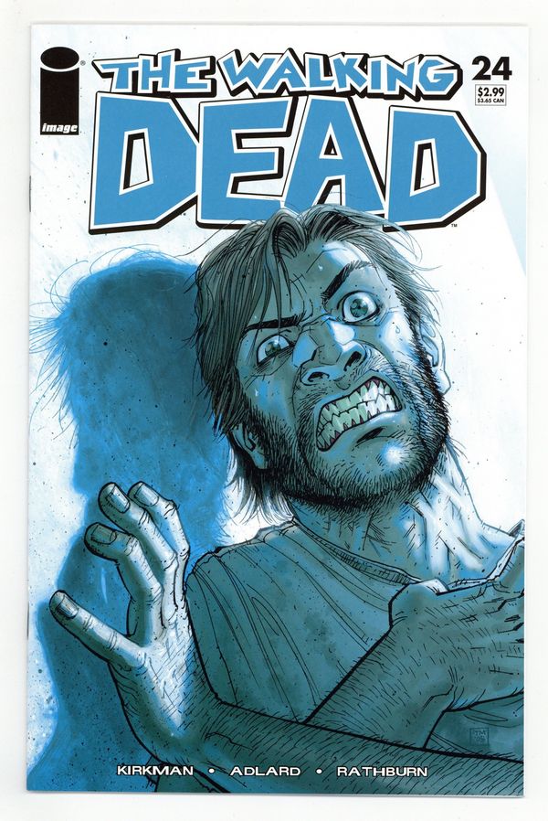 written by ROBERT KIRKMAN art by CHARLIE ADLARD & CLIFF RATHBURN cover by TONY MOORE. Something has happened to drive Rick over the edge. There's no turning back now as we reach the two-year mark on the zombie movie that never ends. Join the thousands of readers already enjoying this book as we ask, 'Where do we go from here?' And trust us - this is only the beginning. RETAILER WARNING: MAY NOT BE SUITABLE FOR ALL AGES Cover price $2.99.