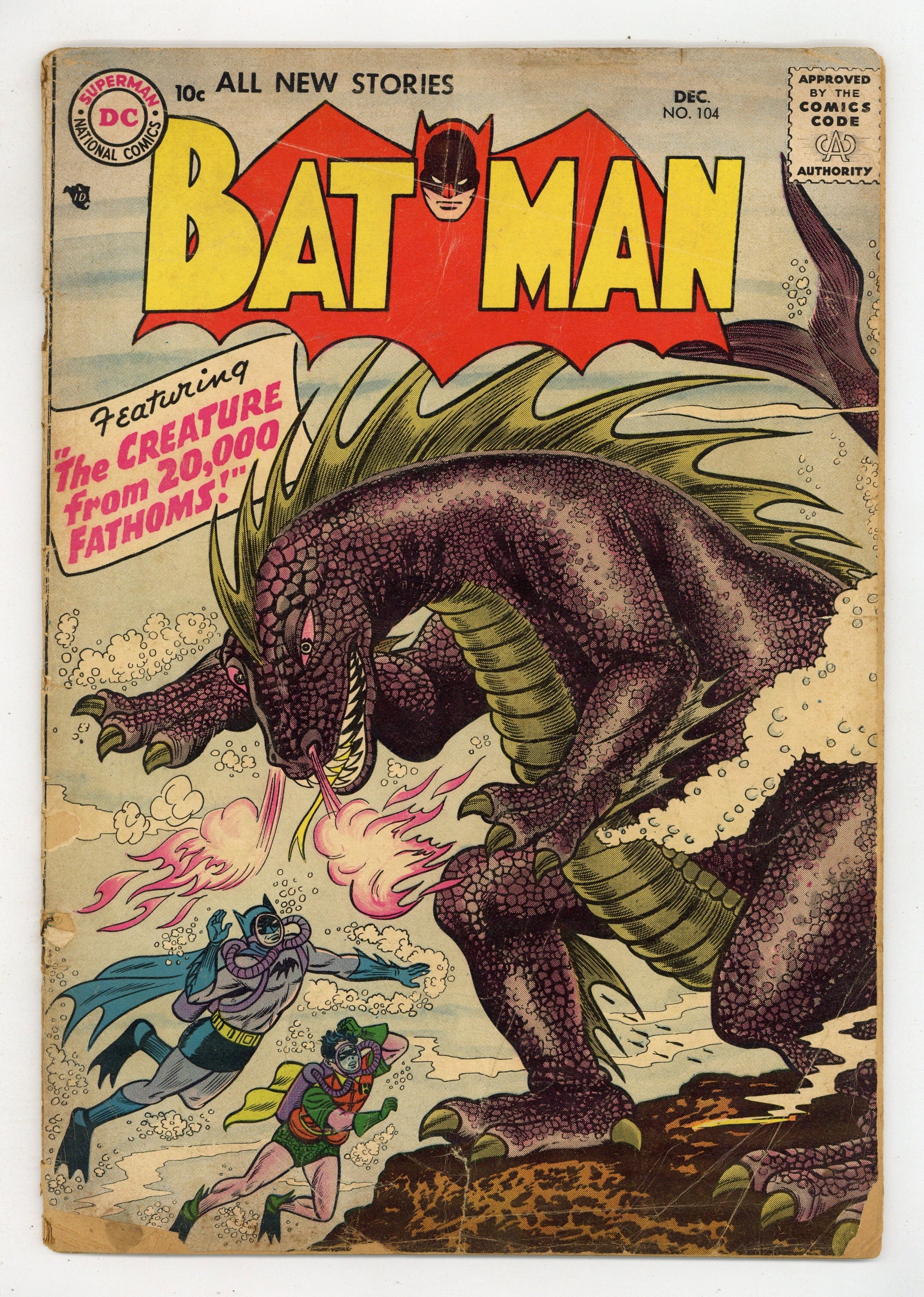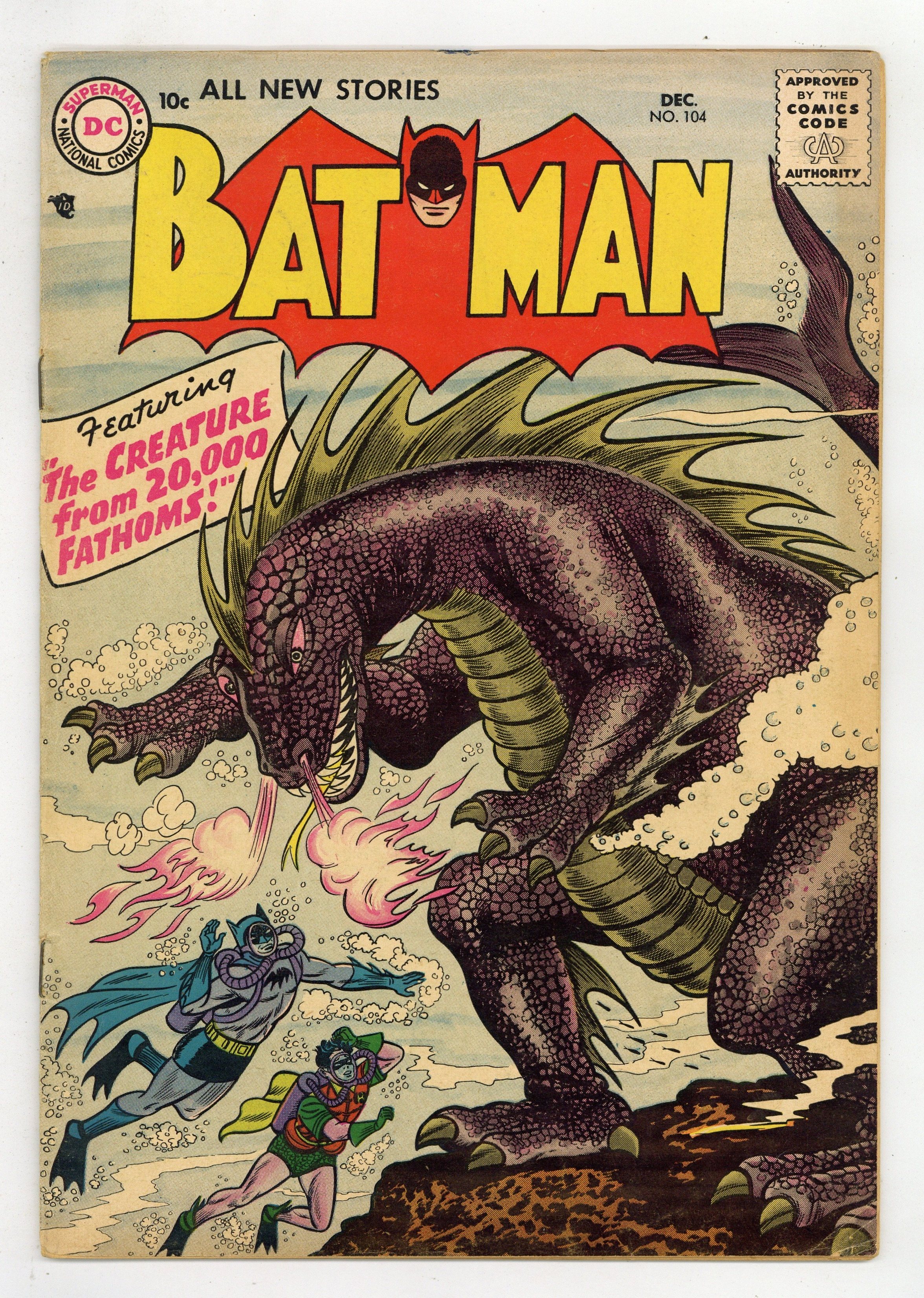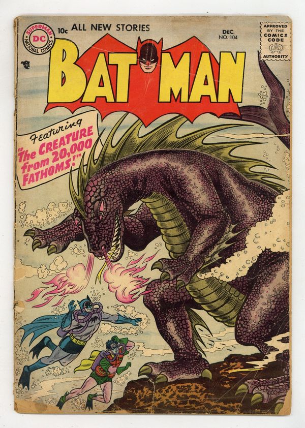 Cover by Sheldon Moldoff. "The Man Who Knew Batman's Secret," script by Edmond Hamilton, pencils by Dick Sprang, inks by Charles Paris; Batman is seeking to capture John Varden, but the wily criminal eludes him. Meanwhile, an out-of-town detective named Crane enters the picture, accidently discovering Batman's true identity, a fact well publicized by the media. Half-page Casey the Cop story by Henry Boltinoff. Gifts to the United Nations! public service announcement, art by Ruben Moreira. "Robin's 50 Batman Partners," script by Bill Finger, pencils by Dick Sprang, inks by Charles Paris; Batman injures his foot, so Robin must fill in for the Caped Crusader at the Batman Exposition, where he is being honored; Unfortunately, the Boy Wonder is attacked there by a mob who seek the diamonds the boy is carrying. 2/3-page Casey the Cop story by Henry Boltinoff. Invisible Detectives article by Jack Miller. "The Creature from 20,000 Fathoms," script by Bill Finger, pencils by Sheldon Moldoff, inks by Charles Paris; A new underwater species is discovered, but a diver seeks to sabotage efforts to study it, so Batman must step in and save the creature and its egg. 36 Pages, Full Color. Cover price $0.10.