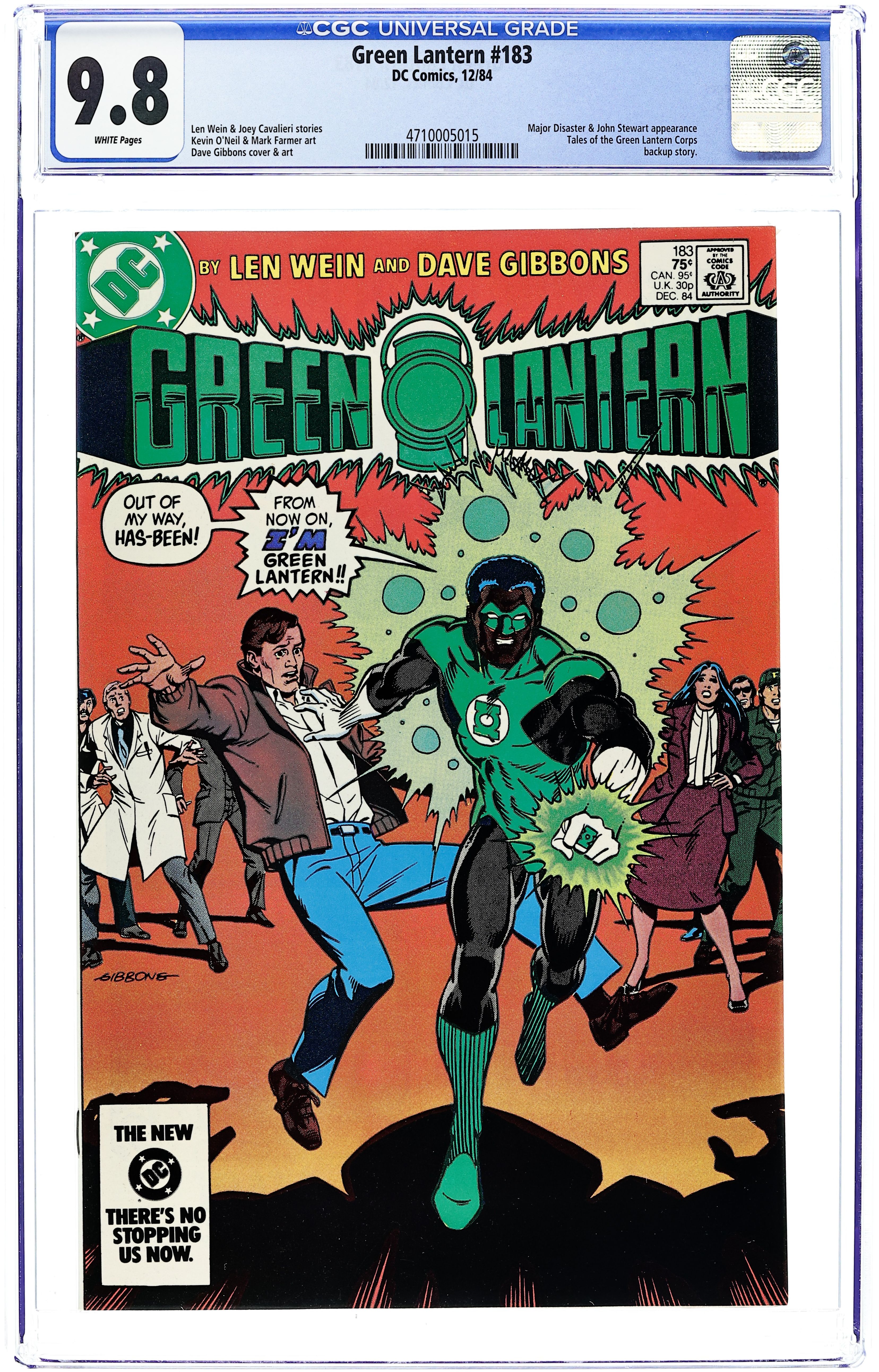"Day of Disaster." While battling Major Disaster, John Stewart makes him see a bunch of Green Lanterns. Script by Len Wein, pencils by Dave Gibbons, inks by Mark Farmer. "I, Lantern" part two. Yron, Green Lantern of Grenda, dies in this Tales of the Green Lantern Corps. Script by Joey Cavalieri, art by Kevin O'Neill. Cover by Gibbons. Cover price $0.75.