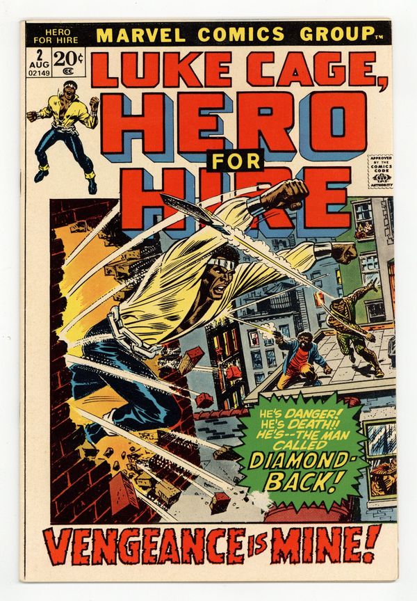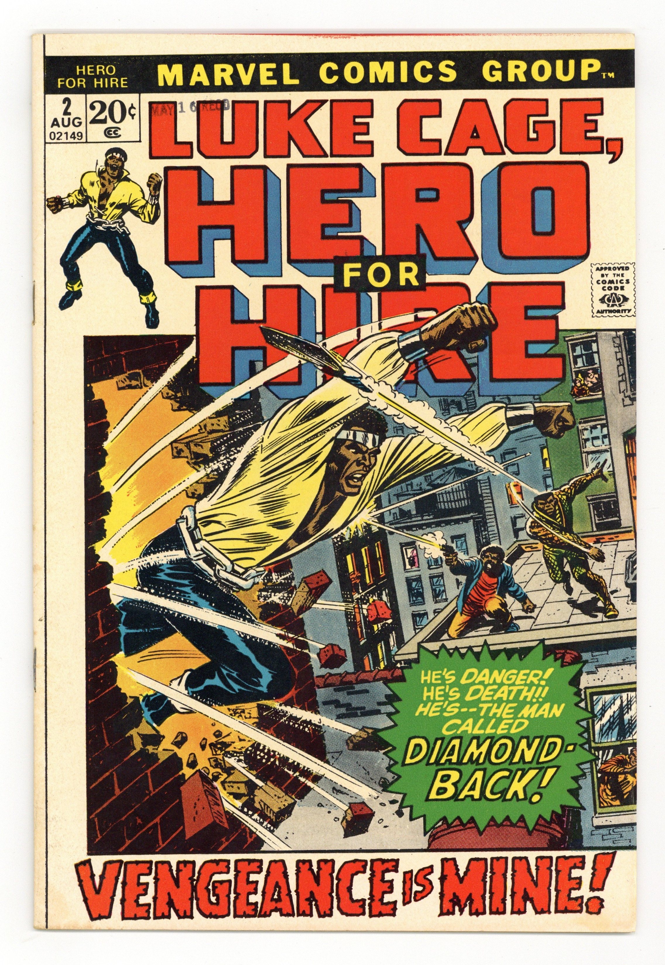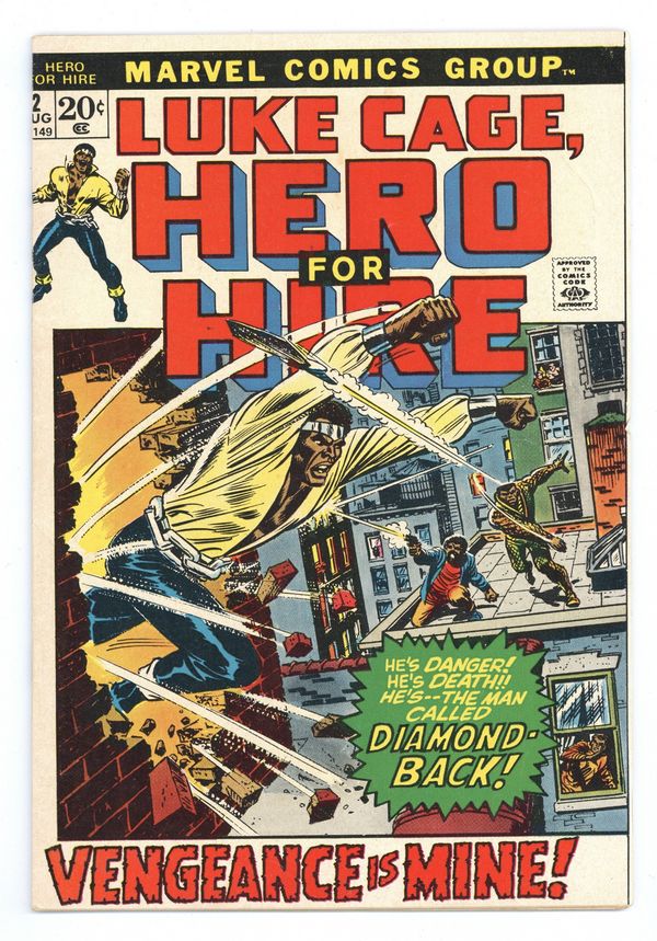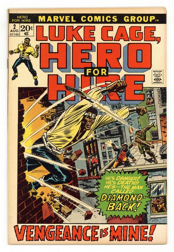 "Vengeance is Mine!" Script by Archie Goodwin, pencils by George Tuska, inks by Billy Graham. When Luke Cage's actions cause a decline in business for a local drug dealer, he is forced to pit his diamond-hard fists against the deadly assassin known as Diamondback. Cover price $0.20.