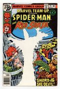 $15.75"Sword of the She-Devil" Guest-starring Spider-Man and Red Sonja. Plot and Script by Chris Claremont. Plot and Pencils by John Byrne. Inks by Terry Austin. Cover by John Byrne and Terry Austin. An emergency situation is developing at the Metropolitan Museum of Art! The Daily Bugle dispatches Peter Parker and a reporter to the site, but someone else sneaks along...Mary Jane Watson! The web-slinger quickly enters the museum and is attacked by grotesque monsters! Mary Jane rushes inside to help the struggling wall-crawler, but what can she do? How about grab the ancient sword of Red Sonja! And in a dazzling transformation...Mary Jane Watson becomes Red Sonja! Now the Amazing Spider-Man and the She-Devil with a Sword team up against the evil sorcerer Kulan Gath! Will New York City survive...and Ms. Watson too? An excellent story! Cameo appearance by Clark Kent on page 3. (Notes: This is a key appearance of Mary Jane Watson during the time period (between 1979 and 1983) when she rarely appeared in any of the Spider-Man titles. Kulan Gath appears next in Uncanny X-men 190. This is the final issue of the Claremont-Byrne run on the Marvel Team-Up title. This issue was reprinted in Marvel Tales 208.) 36 pages. Cover price $0.35.